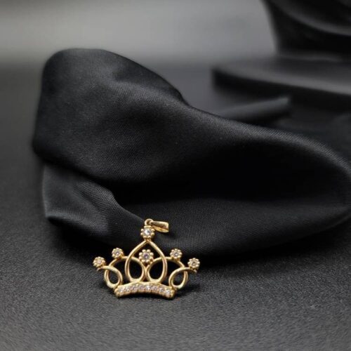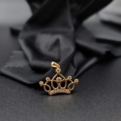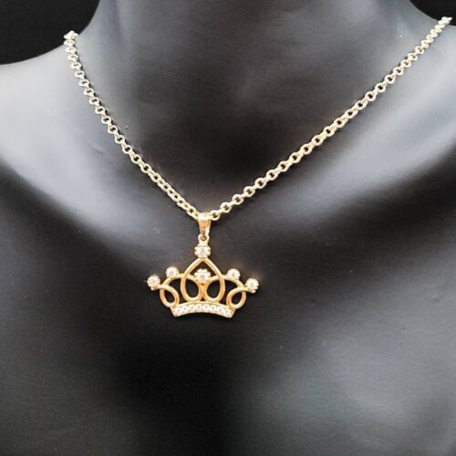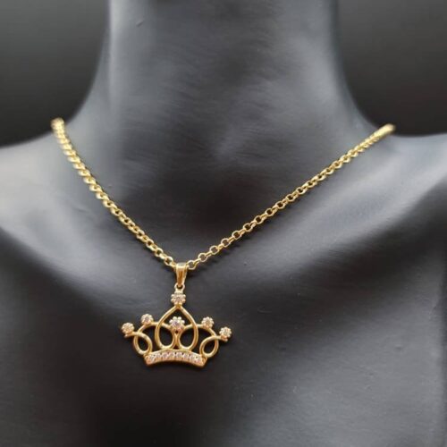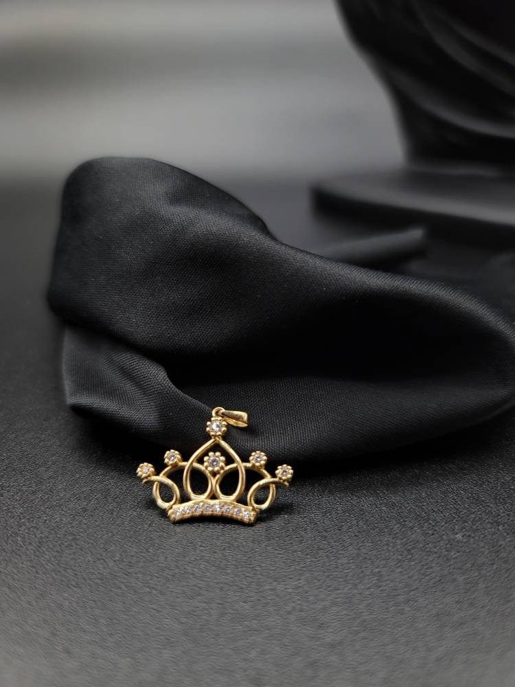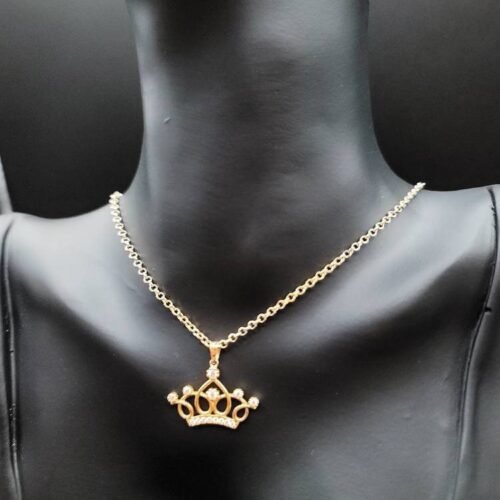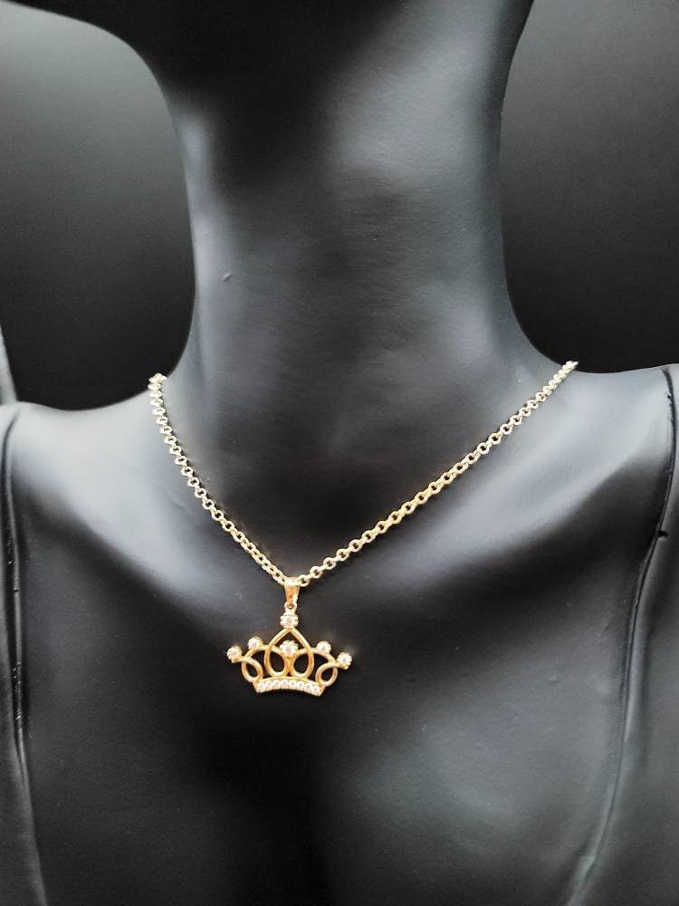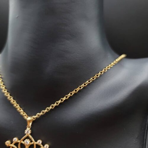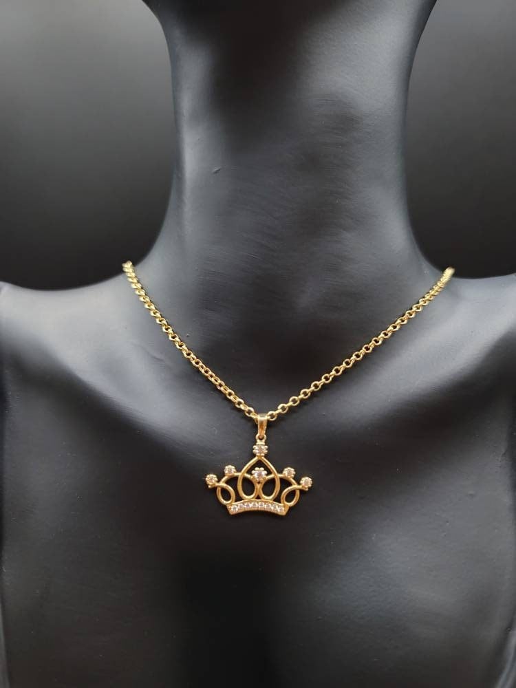 18K Solid Gold Crown Necklace. Flat Cable Chain With The Charming Stone Dimond Cut Pendant. Just Shine On With It! Total Weight: 4.22g