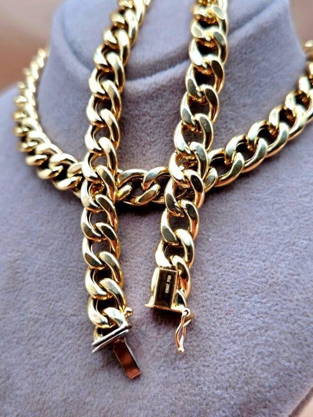 * A gold Cuban chain necklace is an accessory that instantly takes your style to the next level; just slip it on your neck for an effortlessly elegant and sophisticated look. Wear it all day, Everyday. it’s also very study to hold your favorite pendant or ring. A valuable gold chain gift for men and women!