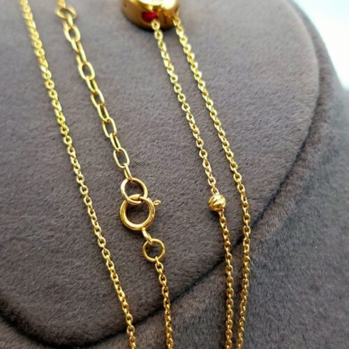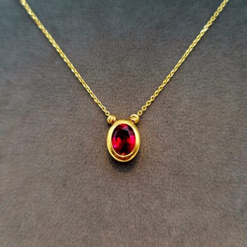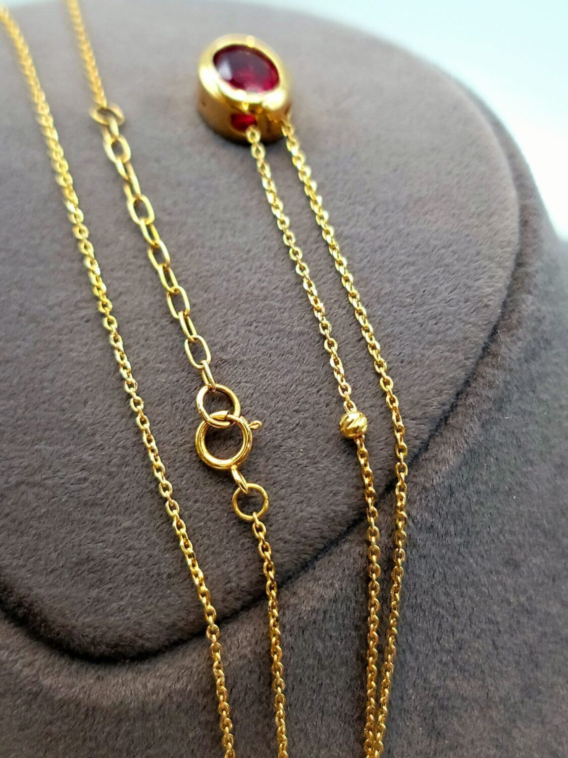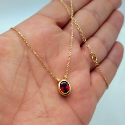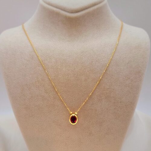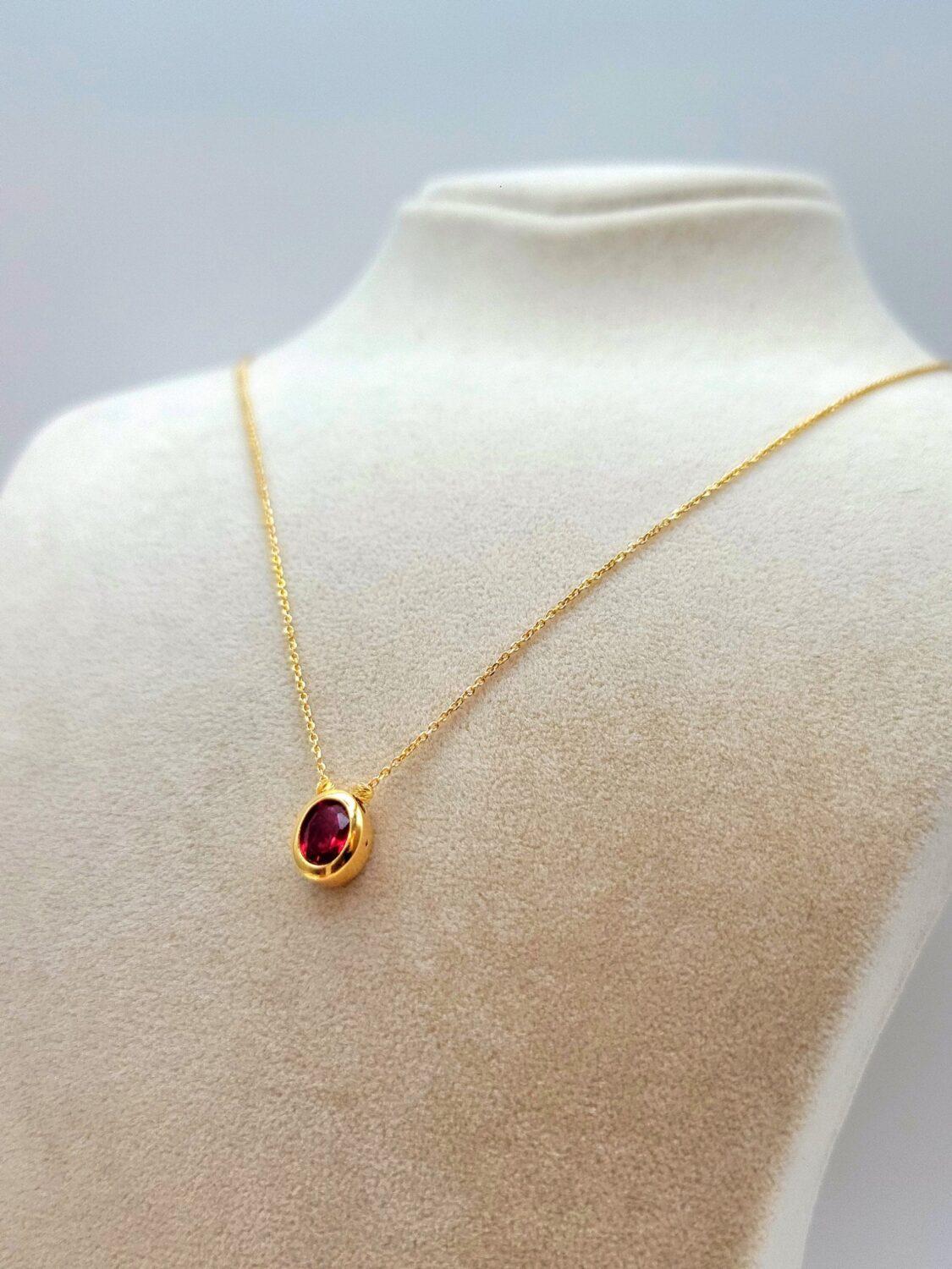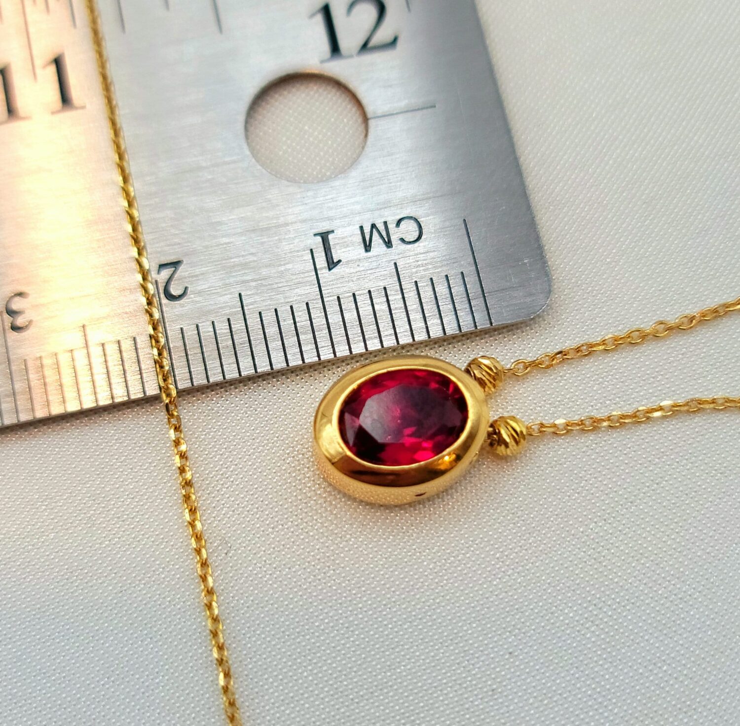 18K Solid Gold Diamond-cut Cubic Zirconia Charm Necklace, 18K Solid Gold Cable Chain, Oval Shape Red Stone Charm Necklace, Christmas Gift!