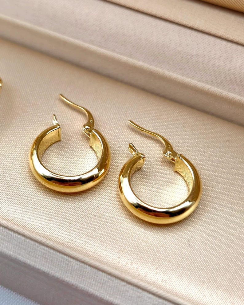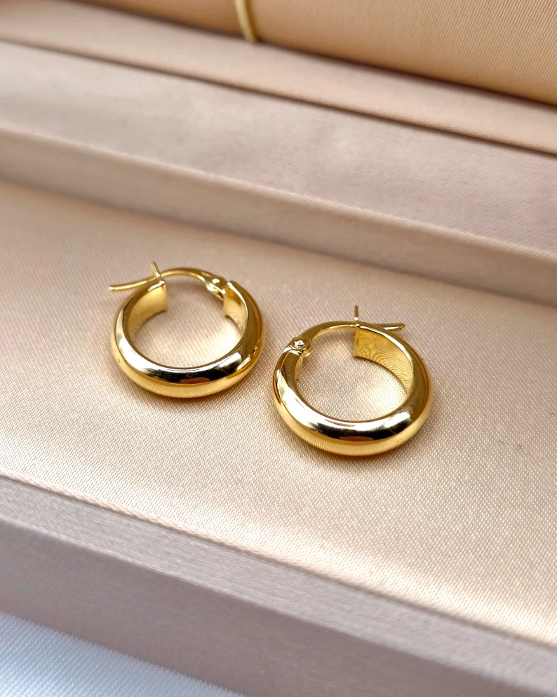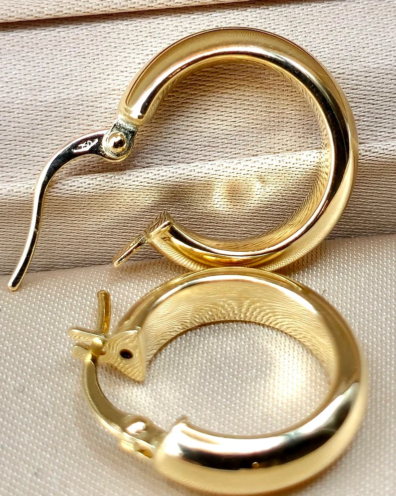 Handcrafted authentic 18K gold Hoop latch back earrings. The perfect polish enhances the elegance of this piece, making it a beautiful and gorgeous accessory for everyday wear. A valuable gift idea for Weddings, Christmas, anniversaries, birthdays, or any occasion that deserves a touch of elegance and sophistication. Suitable for both men and women!