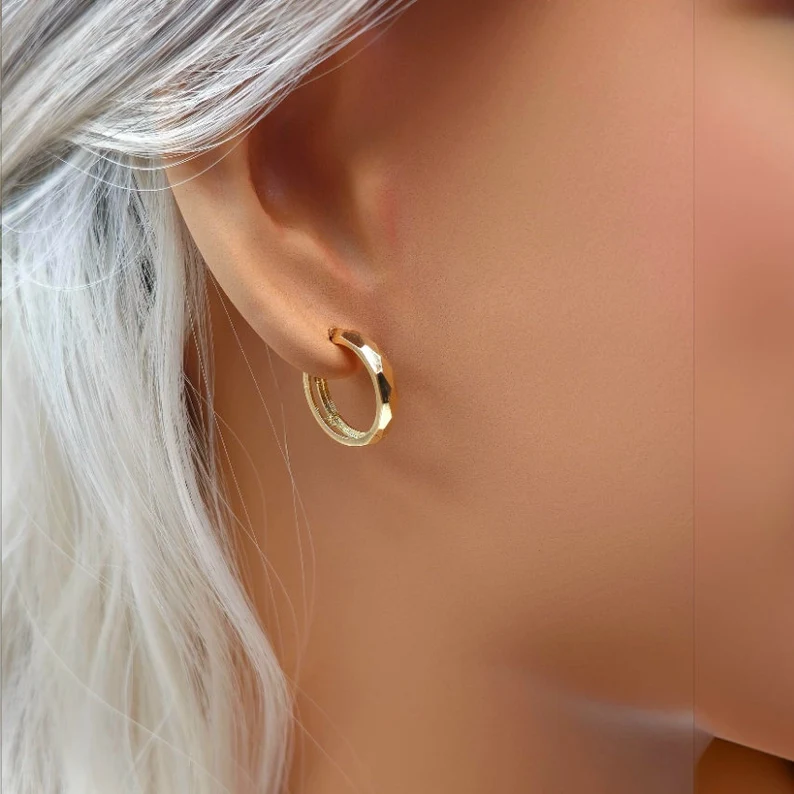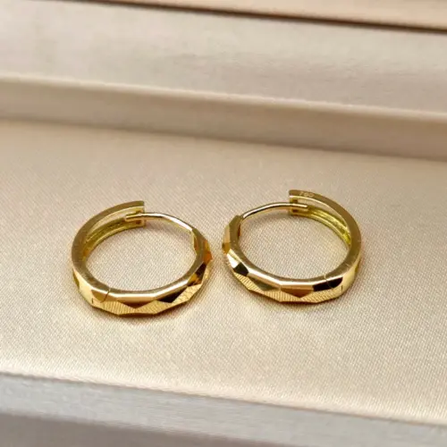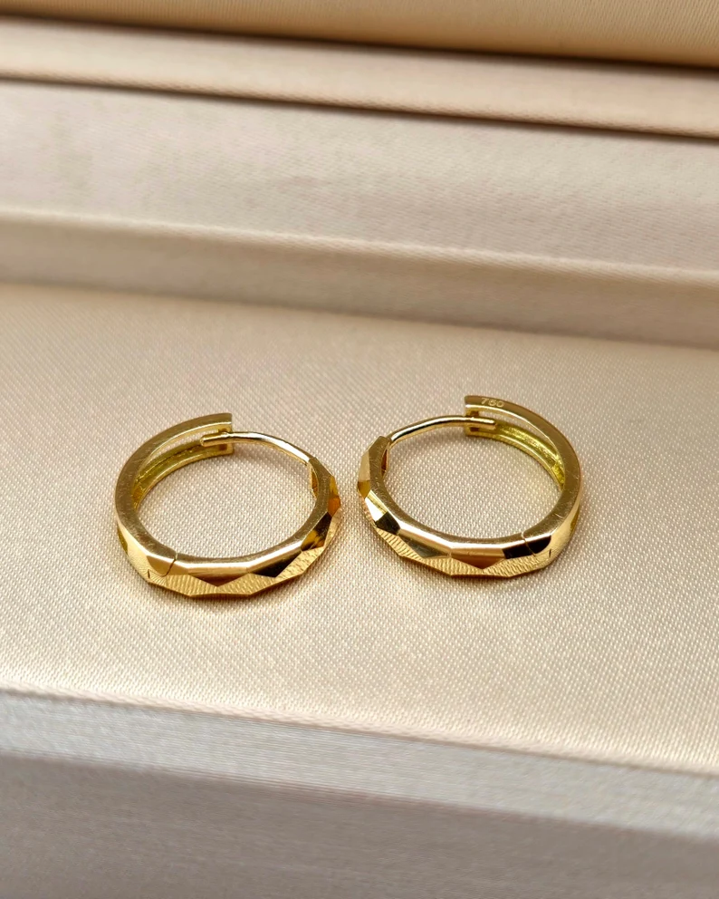 Style: Huggie Hoop Earrings Diamond-cut – 18K Gold