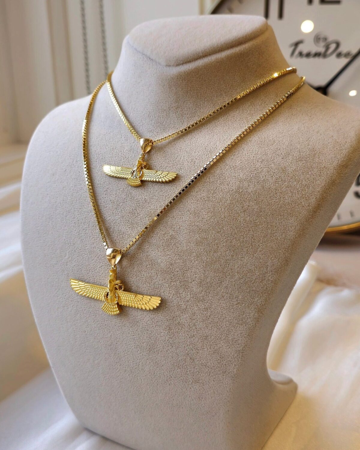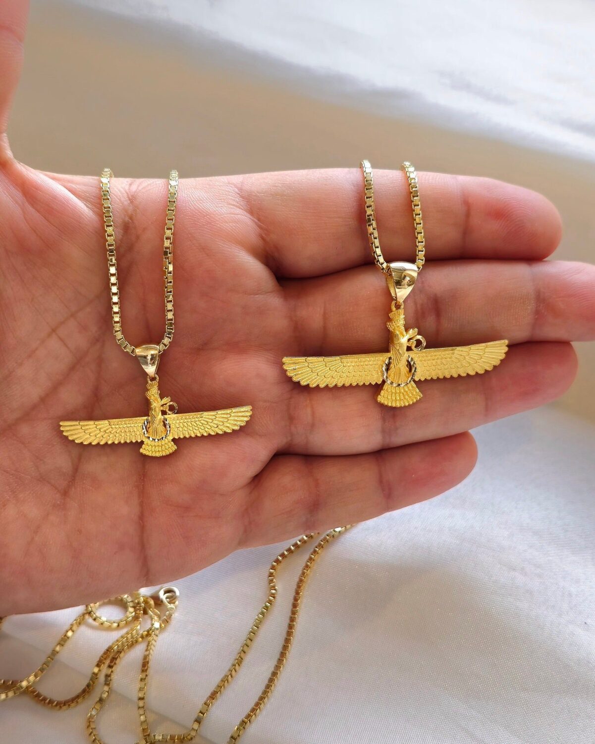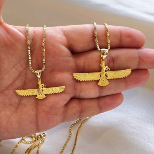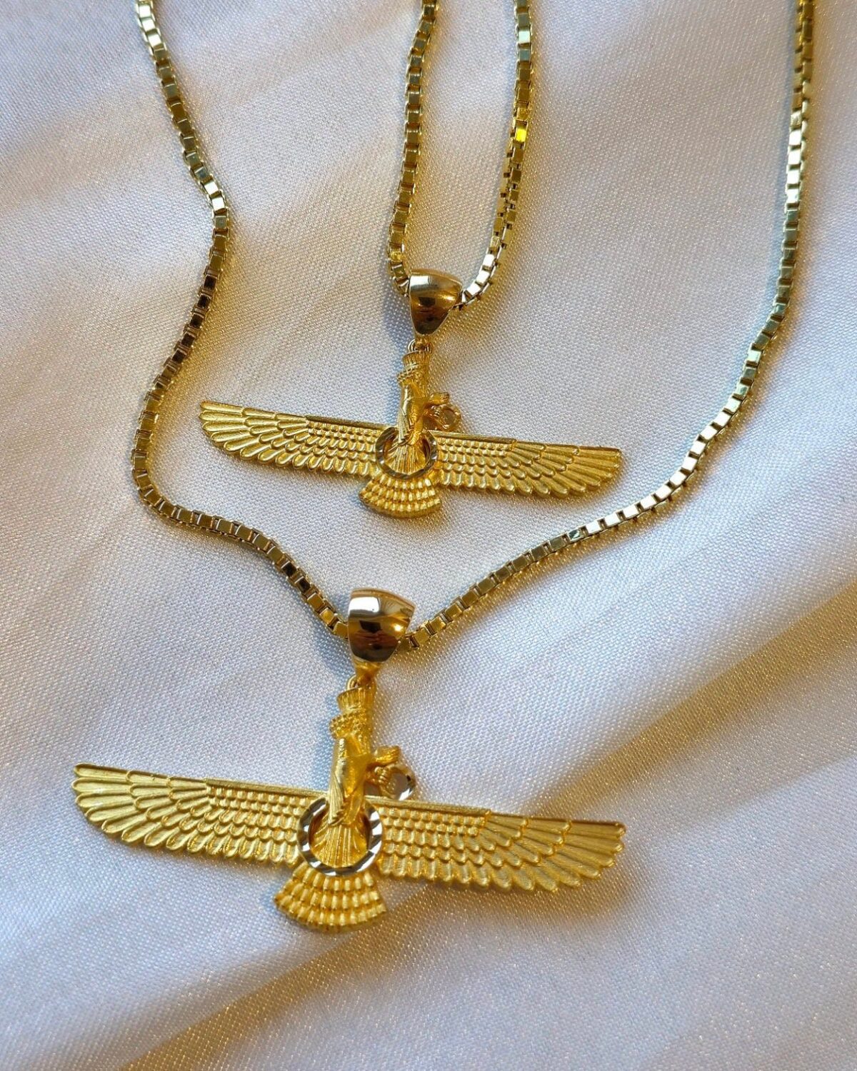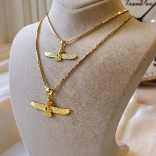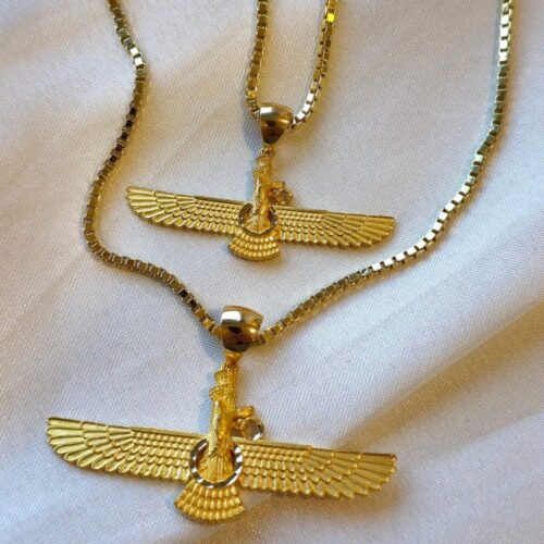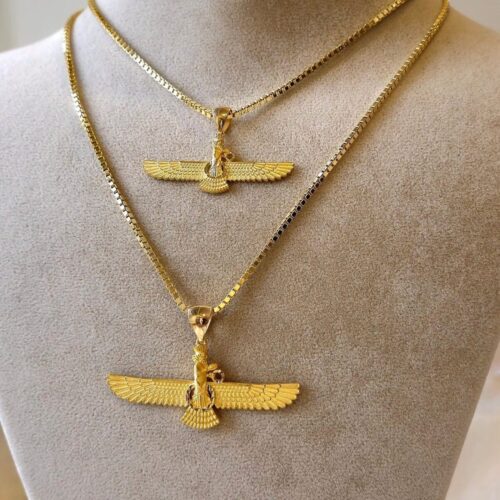 * The Faravahar is the best-known symbol from ancient Persia of the winged sun disk with a seated male figure in the center. It is thought to represent Ahura Mazda, the god of Zoroastrianism. the symbol of power, brightness and kingdom! This perfect jewelry makes you become the center of attention.