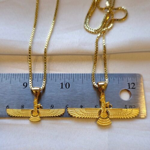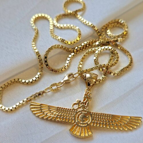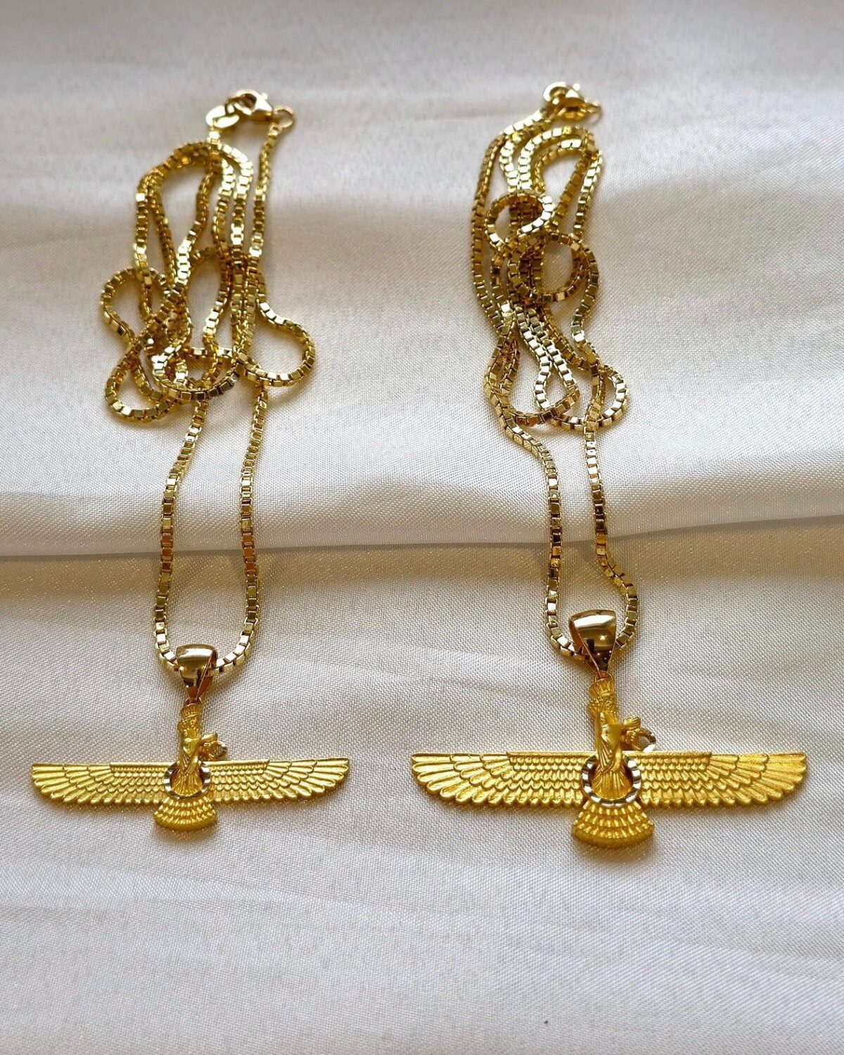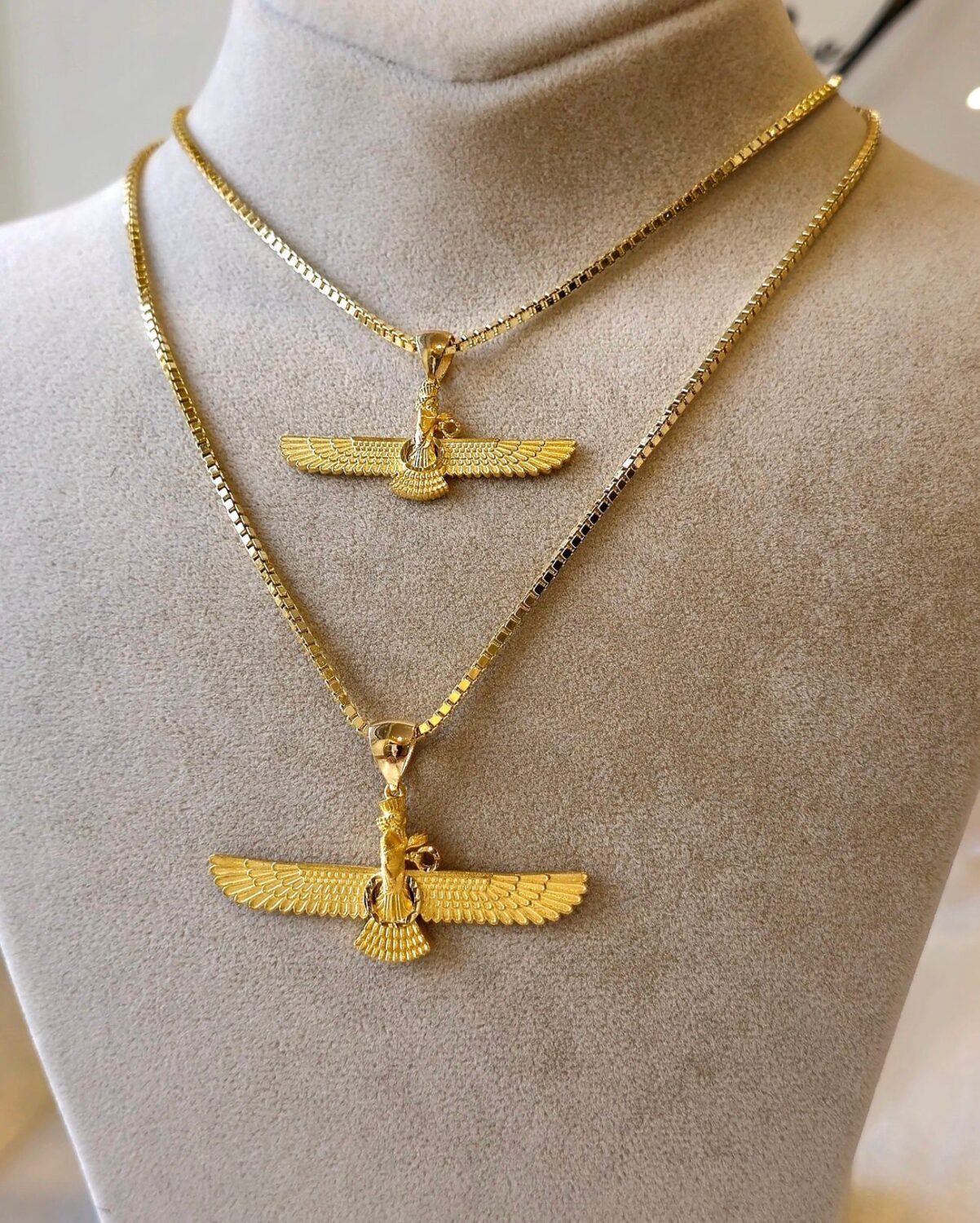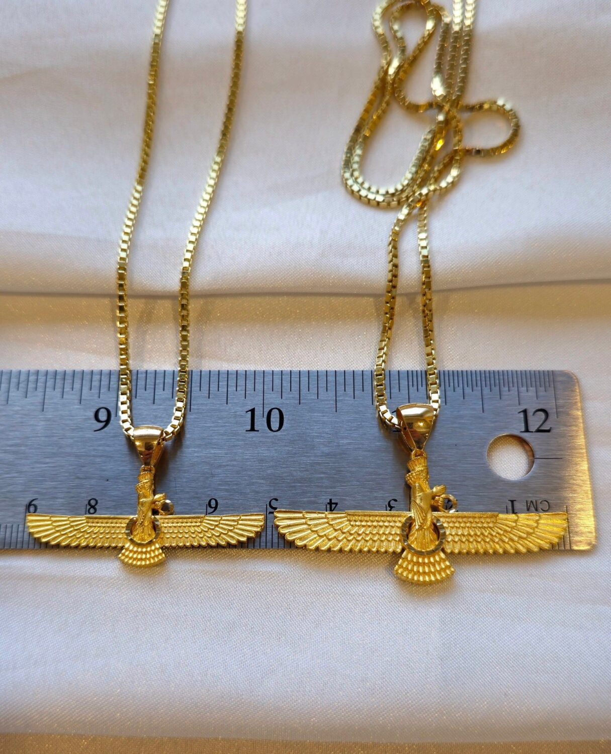 18K Solid Gold Faravahar Pendant Necklace, 18K Real Gold Symbol of Ahura Mazda Pendant with Box Chain, Gold Charm King Necklace for Him!