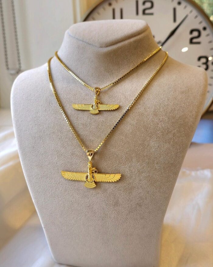 * The Faravahar is the best-known symbol from ancient Persia of the winged sun disk with a seated male figure in the center. It is thought to represent Ahura Mazda, the god of Zoroastrianism. the symbol of power, brightness and kingdom! This perfect jewelry makes you become the center of attention.