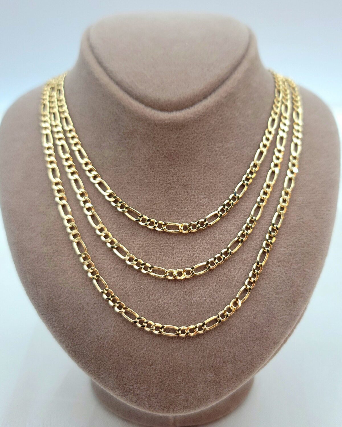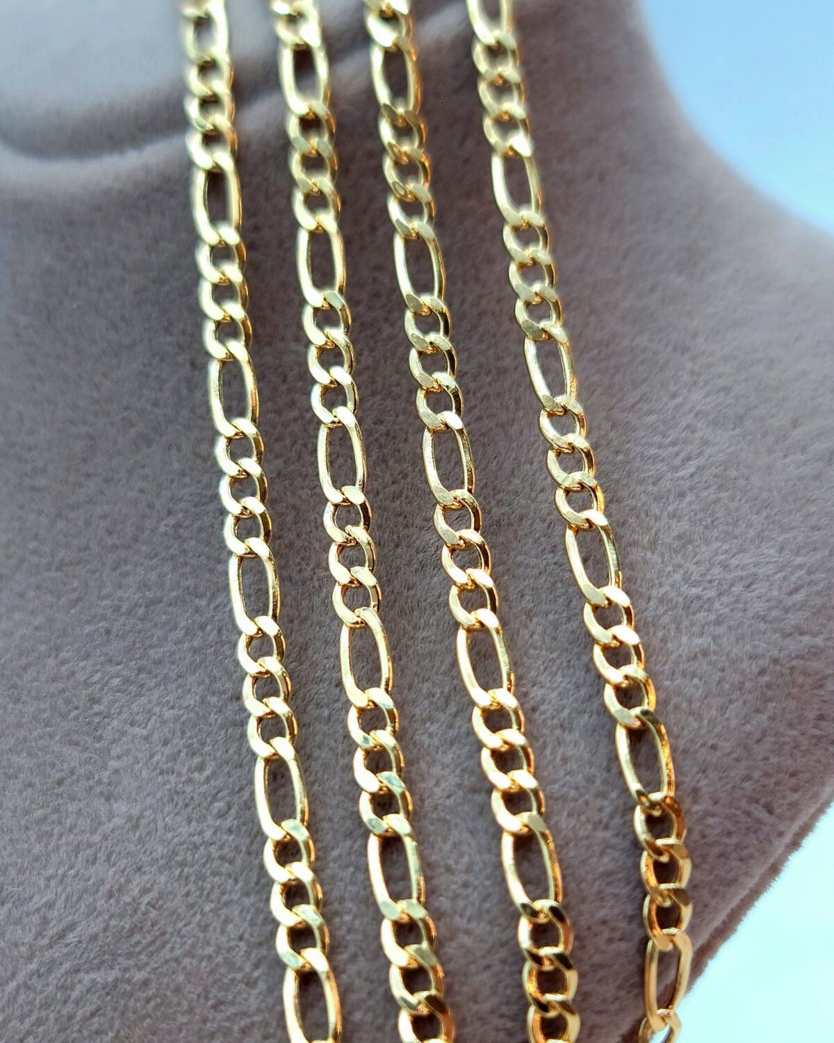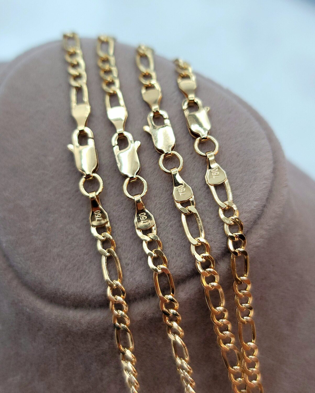 Elevate your style with our expertly handcrafted 18K real gold Figaro chains, combining skilled craftsmanship with luxury. We ensure unparalleled quality and attention to detail, while unbeatable pricing makes this real gold jewelry chain accessible to all. Perfect for everyday use and any occasion, they are durable enough to hold your favorite pendant or ring, making them a great gift for men and women. Christmas, anniversaries, or birthdays gifts! Experience the perfect fusion of style, sophistication, and value with our premium 18K gold Figaro links chains.