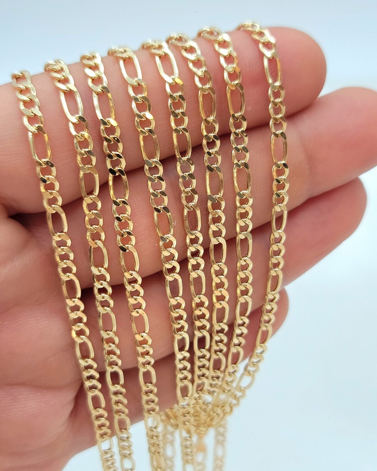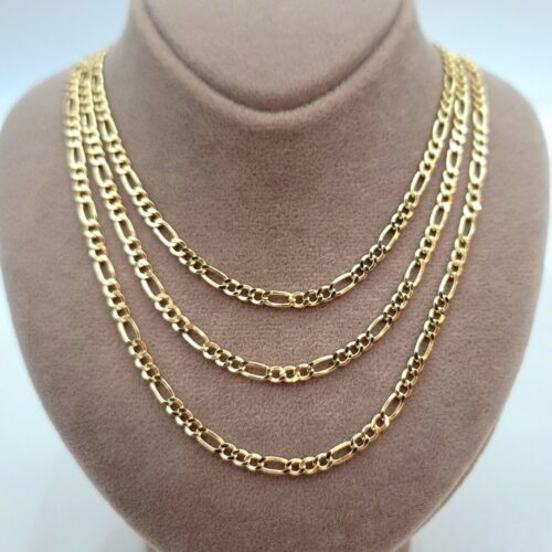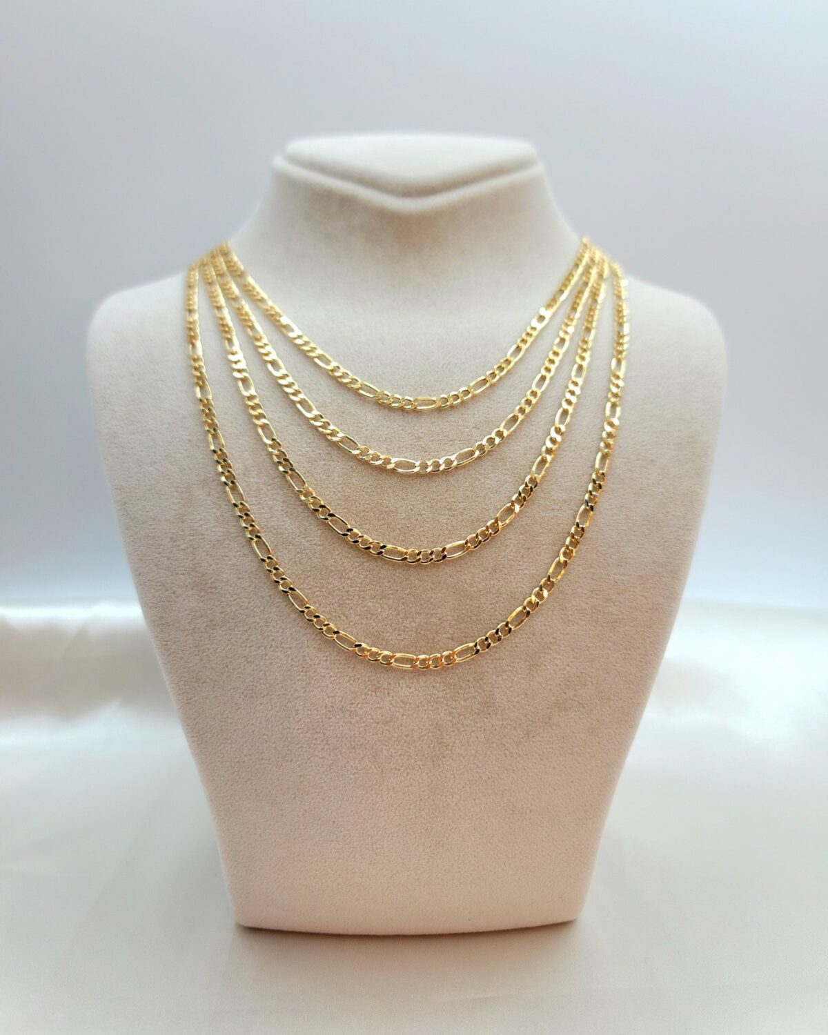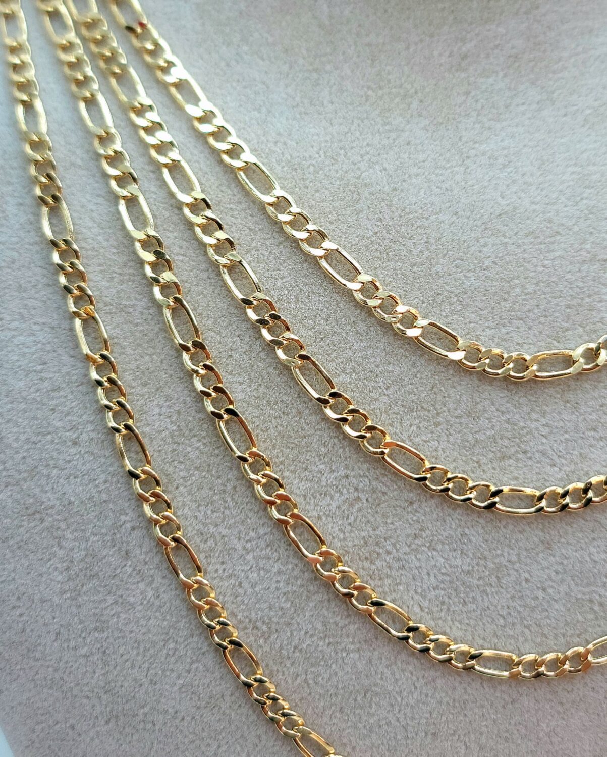 Elevate your style with our expertly handcrafted 18K real gold Figaro chains, combining skilled craftsmanship with luxury. We ensure unparalleled quality and attention to detail, while unbeatable pricing makes this real gold jewelry chain accessible to all. Perfect for everyday use and any occasion, they are durable enough to hold your favorite pendant or ring, making them a great gift for men and women. Christmas, anniversaries, or birthdays gifts! Experience the perfect fusion of style, sophistication, and value with our premium 18K gold Figaro links chains.