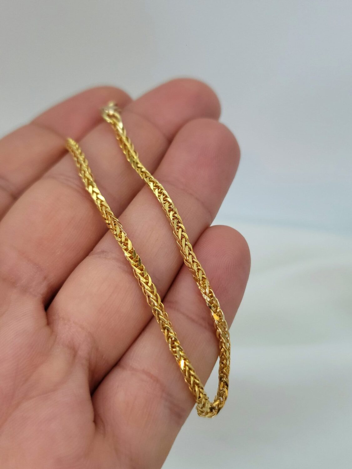 18k solid gold pieces are made to last forever. Solid 18K gold jewelry is the most expensive and high quality option as it doesn’t rub off or flake, and doesn’t tarnish. Solid gold actually increases in value over time, and has the best resale value.