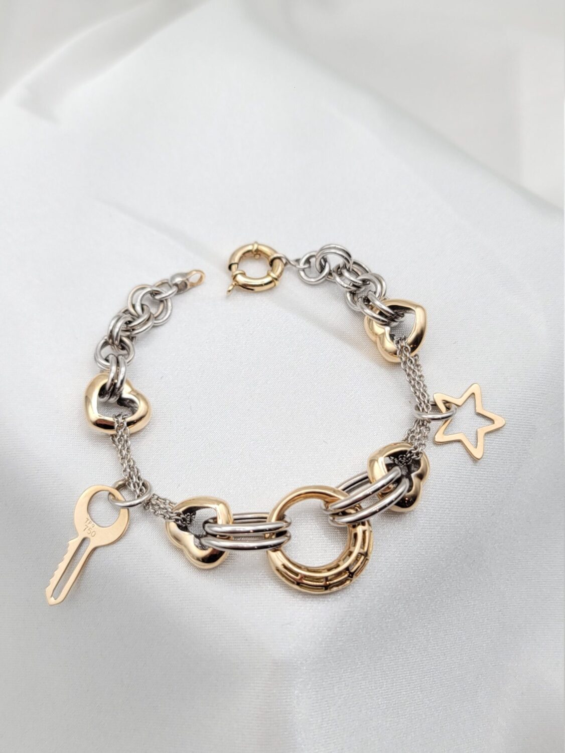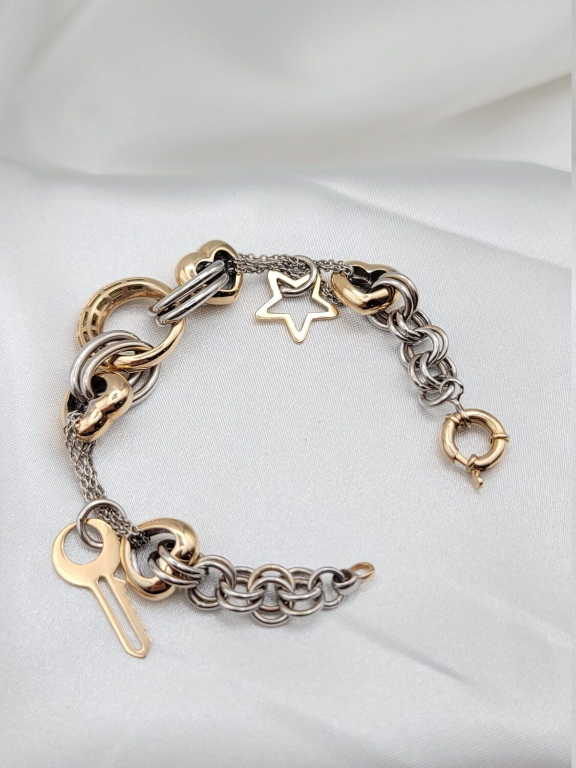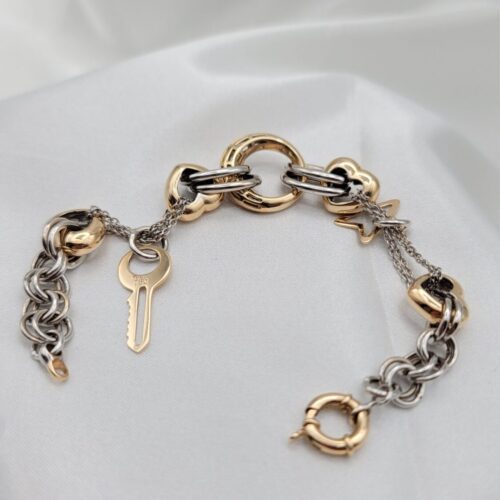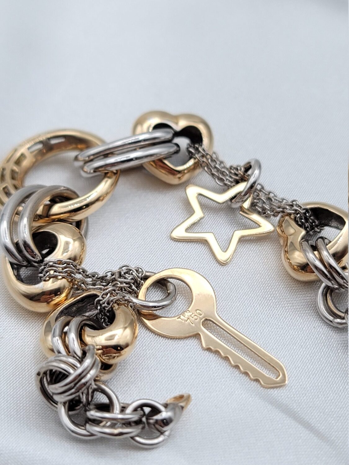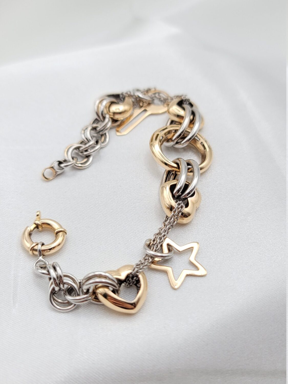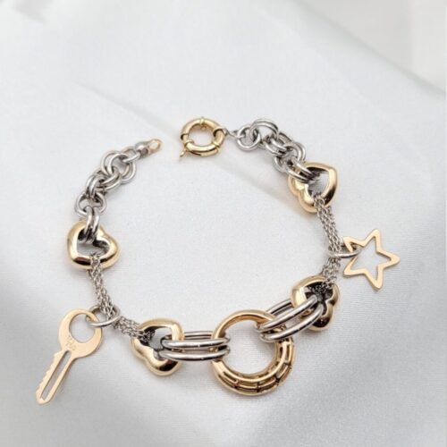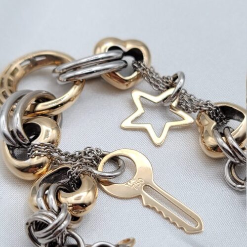 LOVE Bracelet, 18K(750) Yellow And White Solid Gold Charm Bracelet. Unique & Stylish Love Design. Really Charming and Shiny For You and Your Loved Once. A Perfect Gift For Valentine’s Day, Mother’s Day, Birthday, Anniversary!