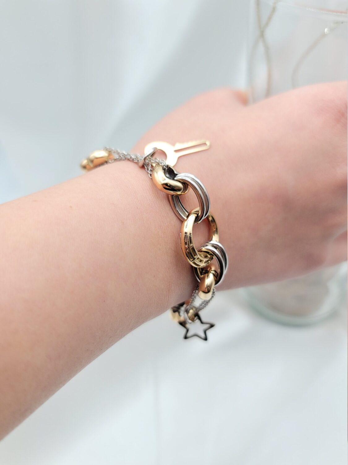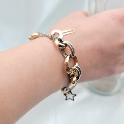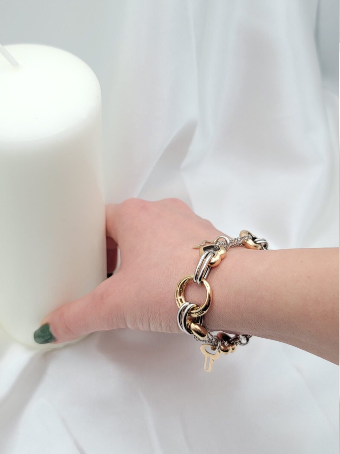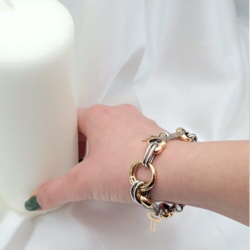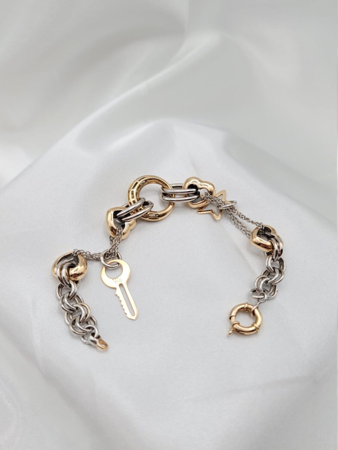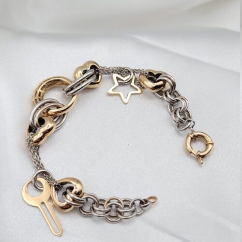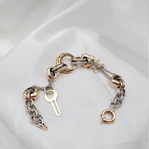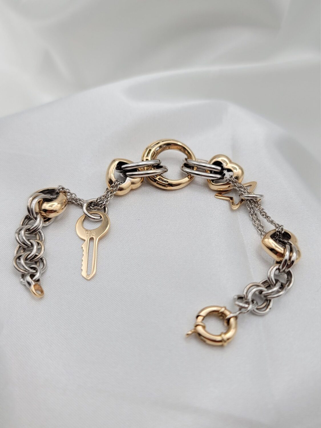 LOVE Bracelet, 18K(750) Yellow And White Solid Gold Charm Bracelet. Unique & Stylish Love Design. Really Charming and Shiny For You and Your Loved Once. A Perfect Gift For Valentine’s Day, Mother’s Day, Birthday, Anniversary!