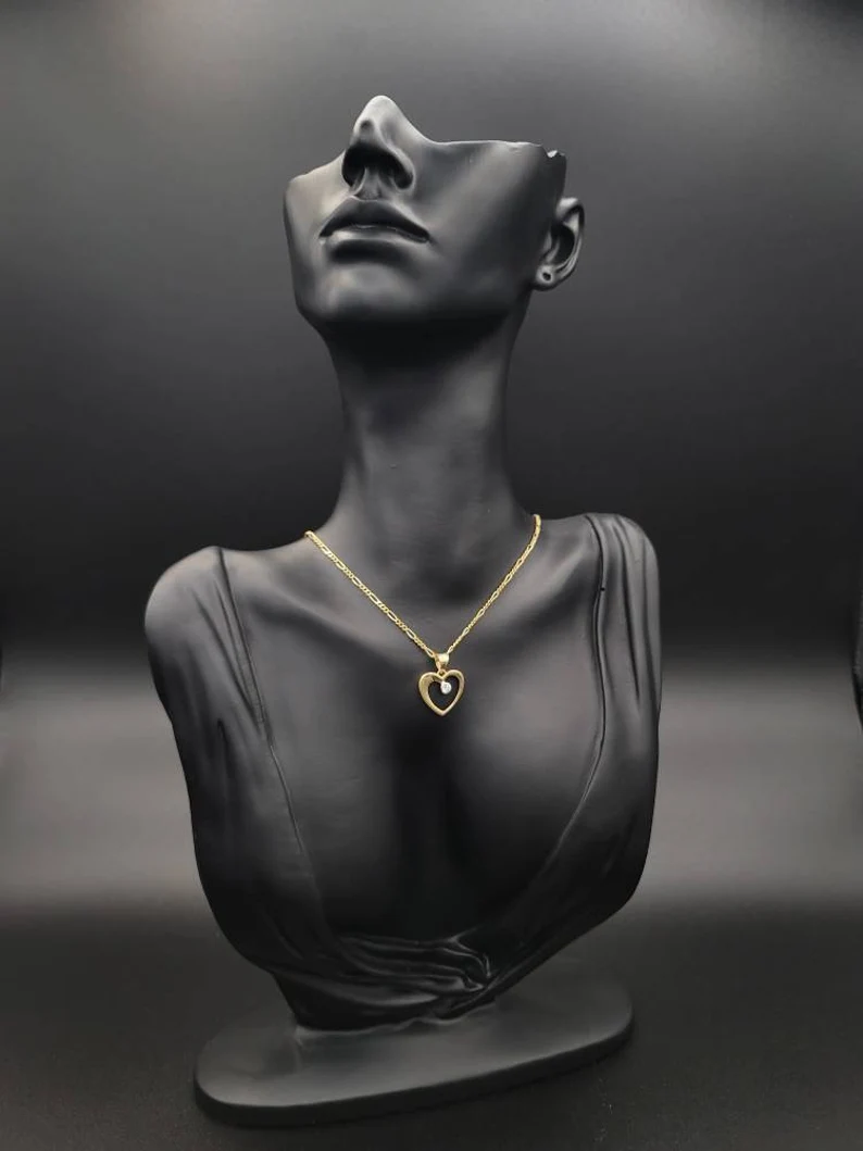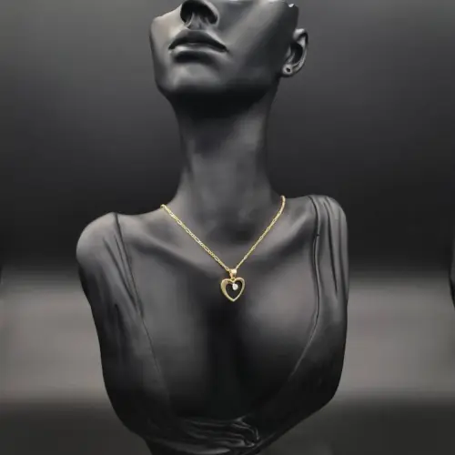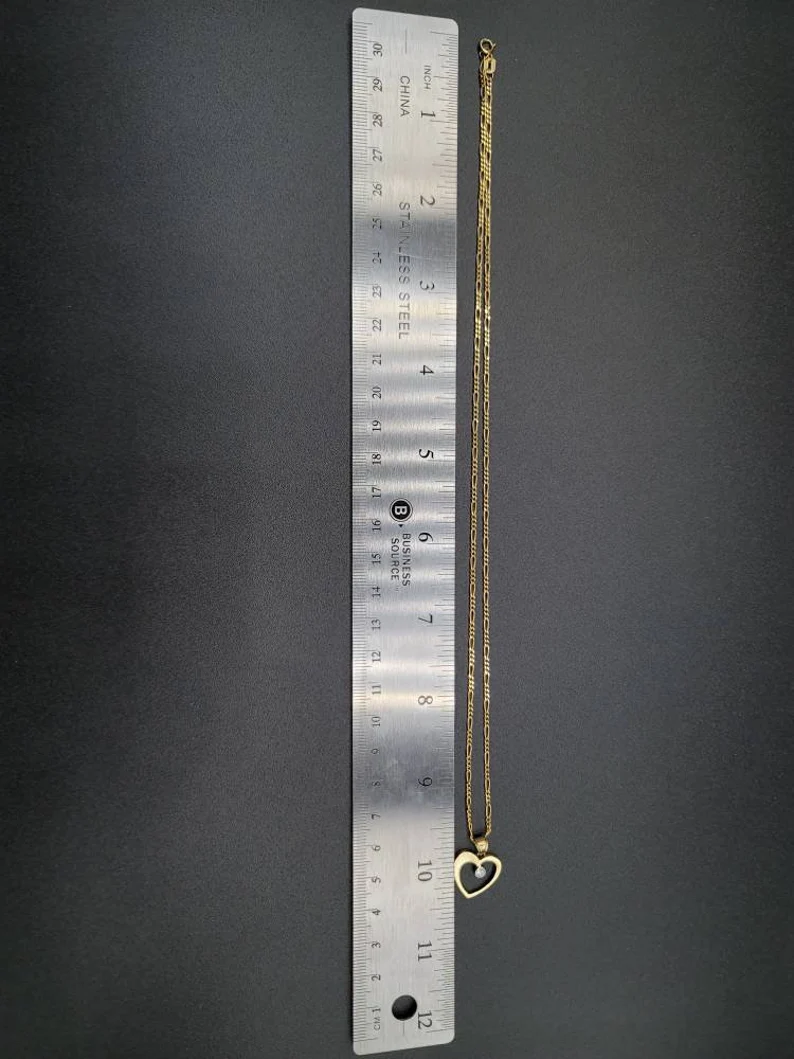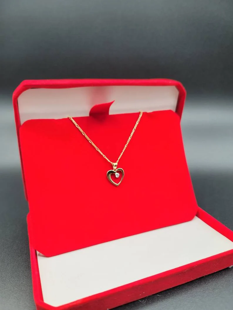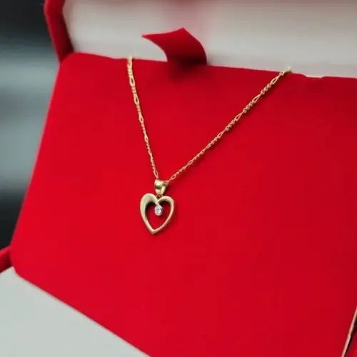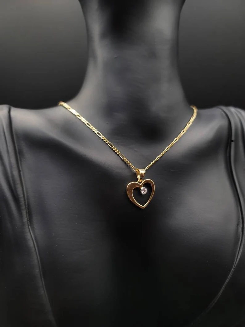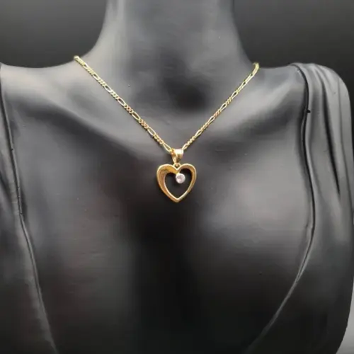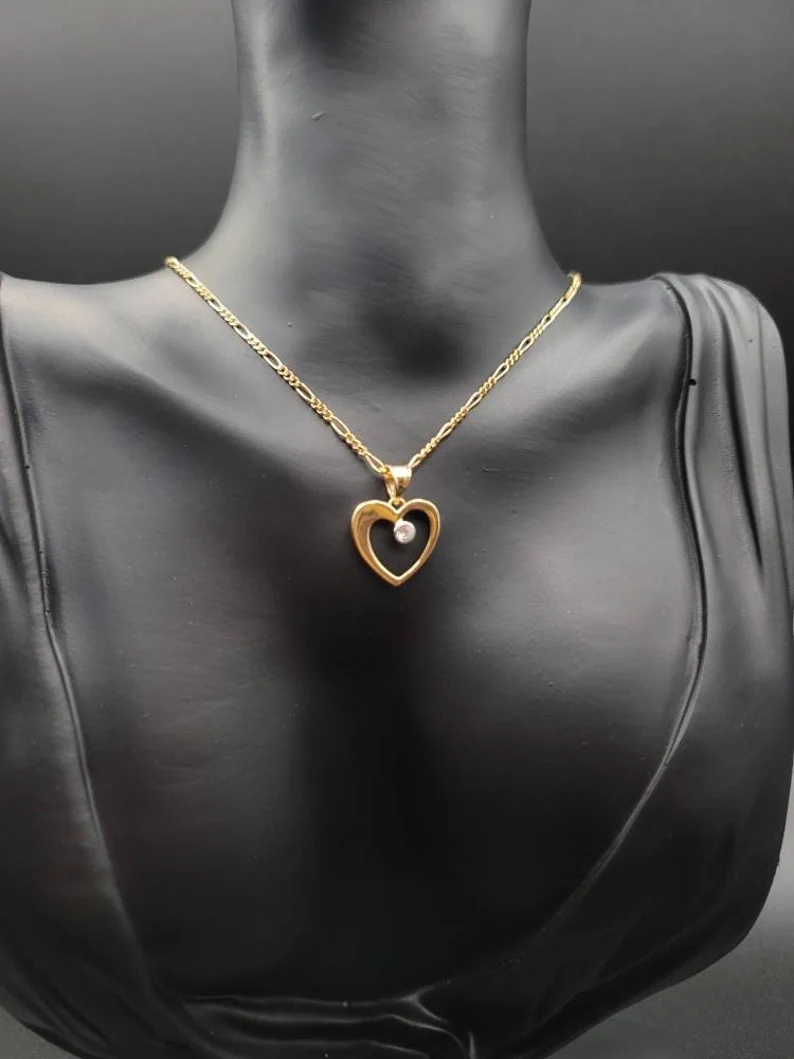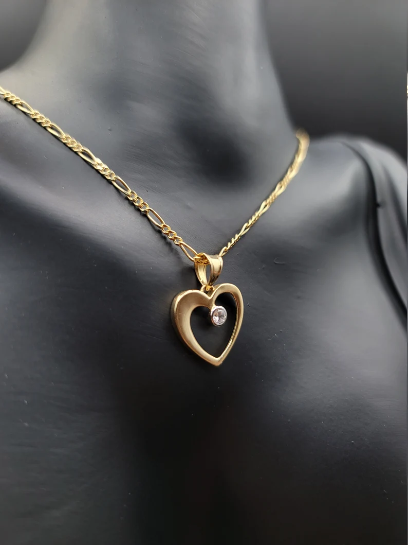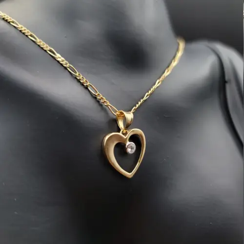 18K Gold Figaro Style Chain With The Unique & Stylish Heart Charmin Pendant.