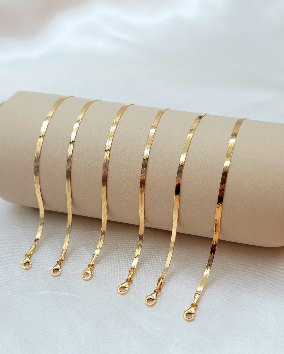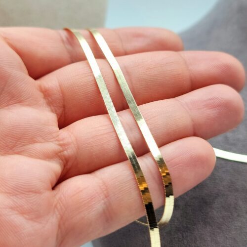 Elevate your style with our expertly handcrafted 18K real gold Herringbone chains, combining skilled craftsmanship with luxury. We ensure unparalleled quality and attention to detail, while unbeatable pricing makes this real gold jewelry accessible to all. Perfect for everyday use and any occasion, they are durable enough to hold your favorite pendant or ring, making them a great gift for men and women. Christmas, anniversaries, and birthdays gifts! Experience the perfect fusion of style, sophistication, and value with our premium 18K gold Herringbone chains.