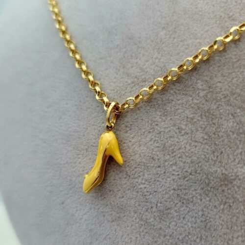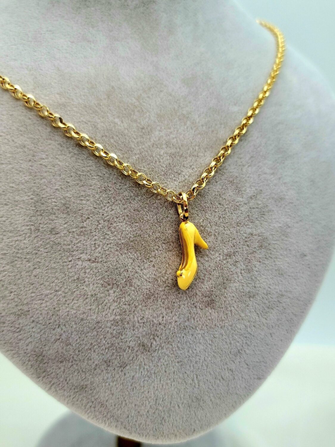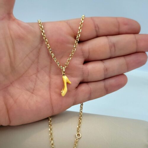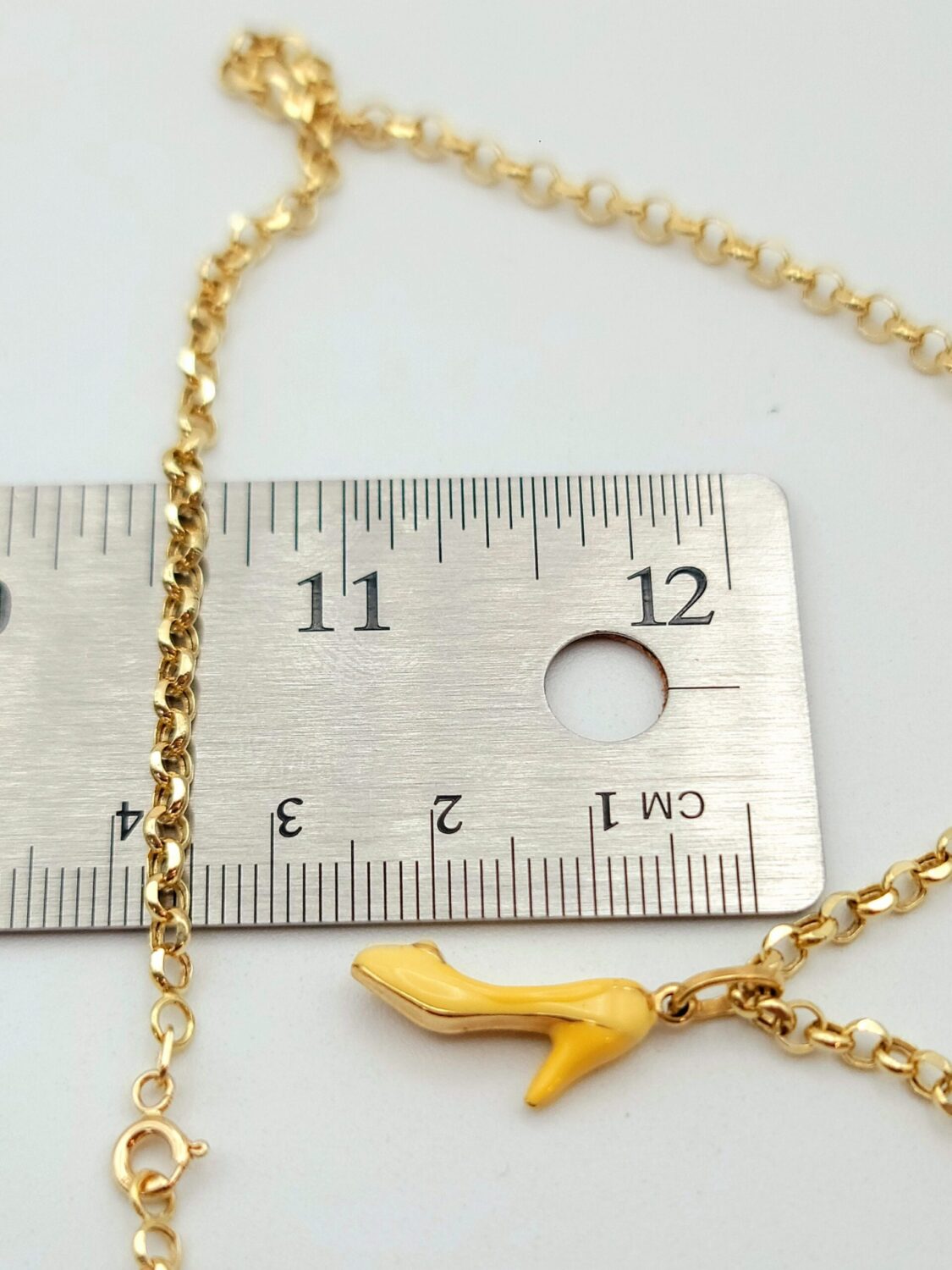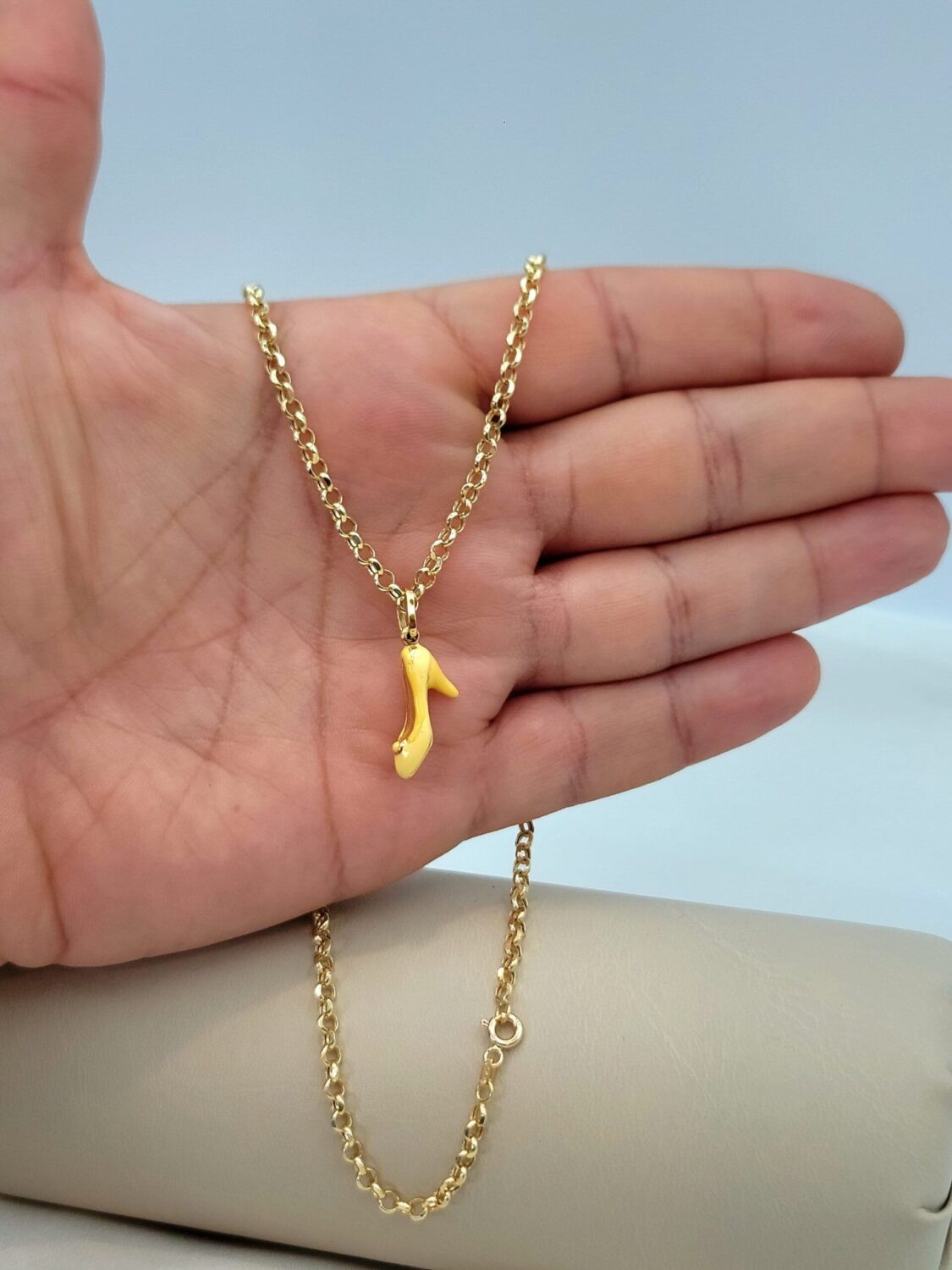18K Ladies High Heel Shoes Necklace. 18K Solid Gold Rolo Chain, Gift for Her!