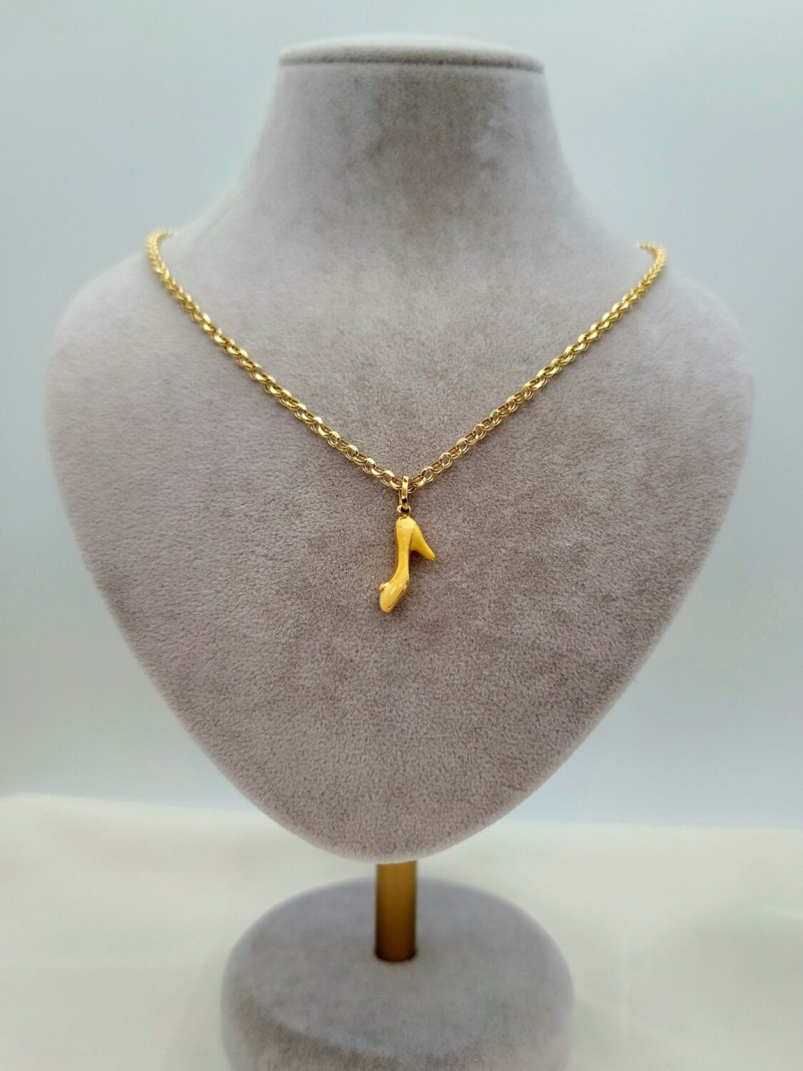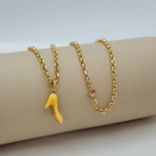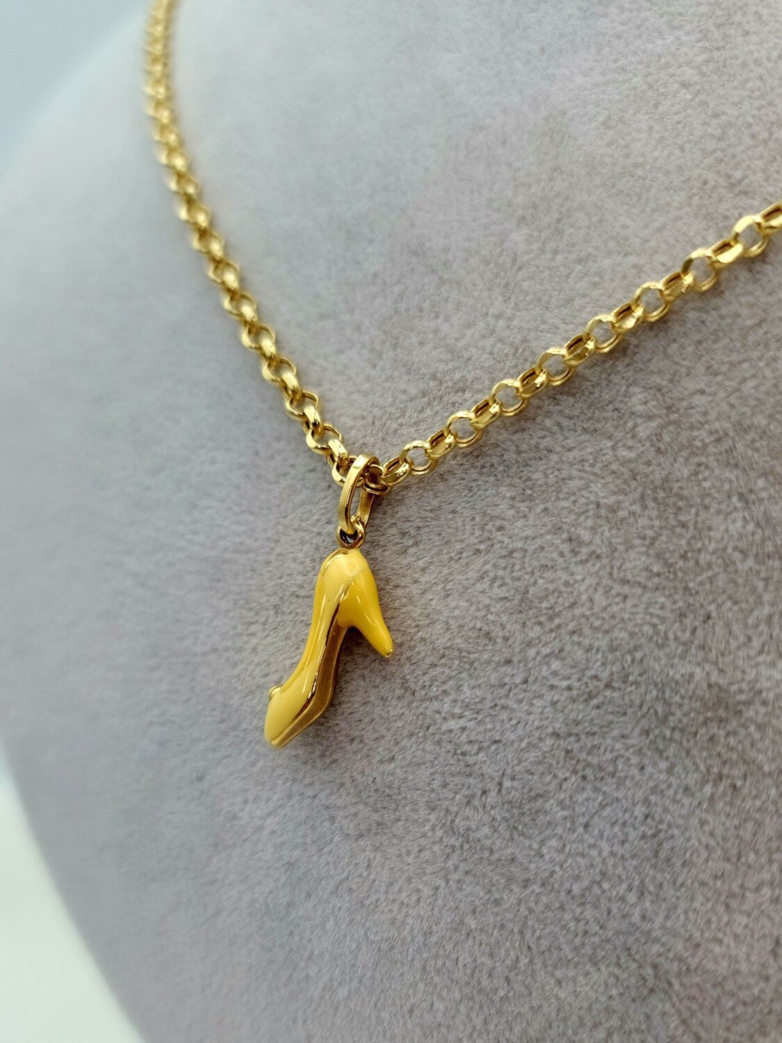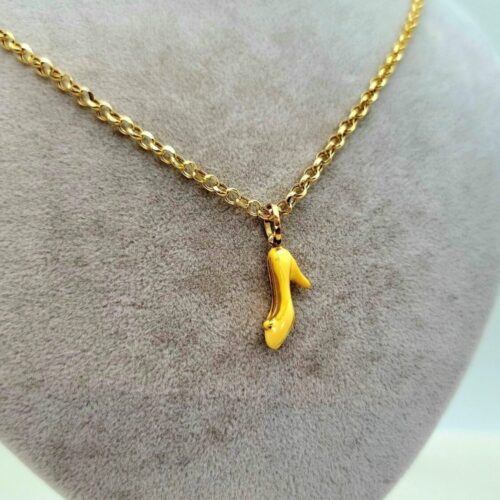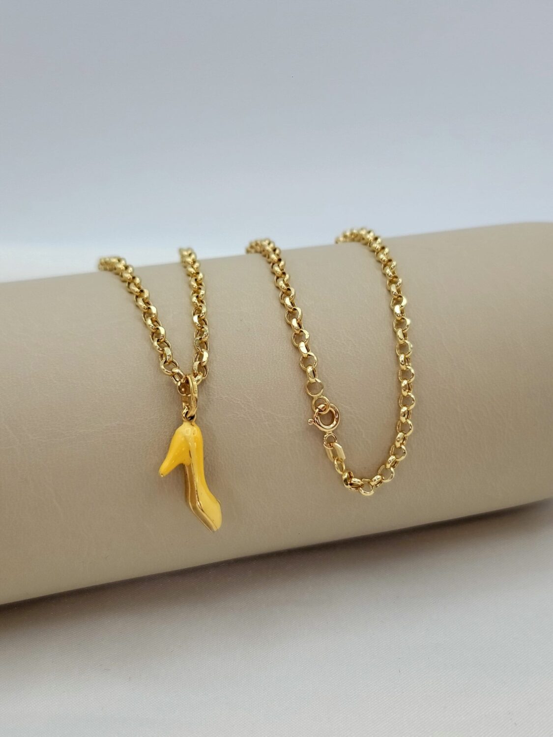 18K Ladies High Heel Shoes Necklace. 18K Solid Gold Rolo Chain, Gift for Her!