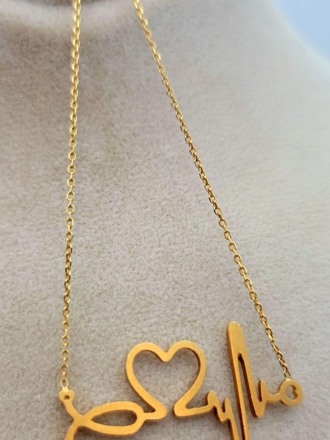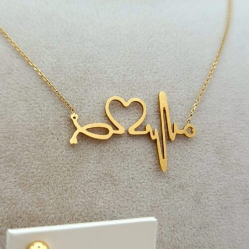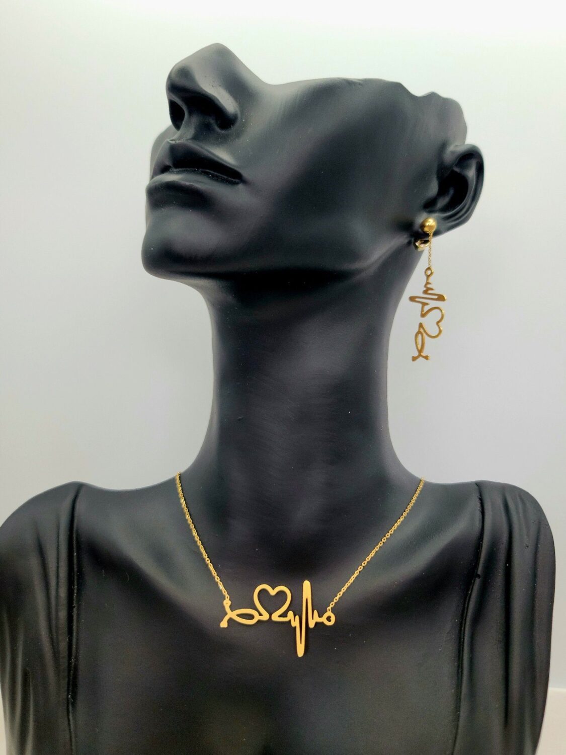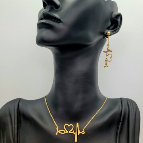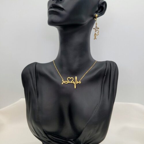 This magnificent love heartbeat necklace sparkles with cable chain that secures with a lobster claw clasp. This unique customized jewelry available as a half set with matching earrings! This set makes you become the center of attention. Ladies!