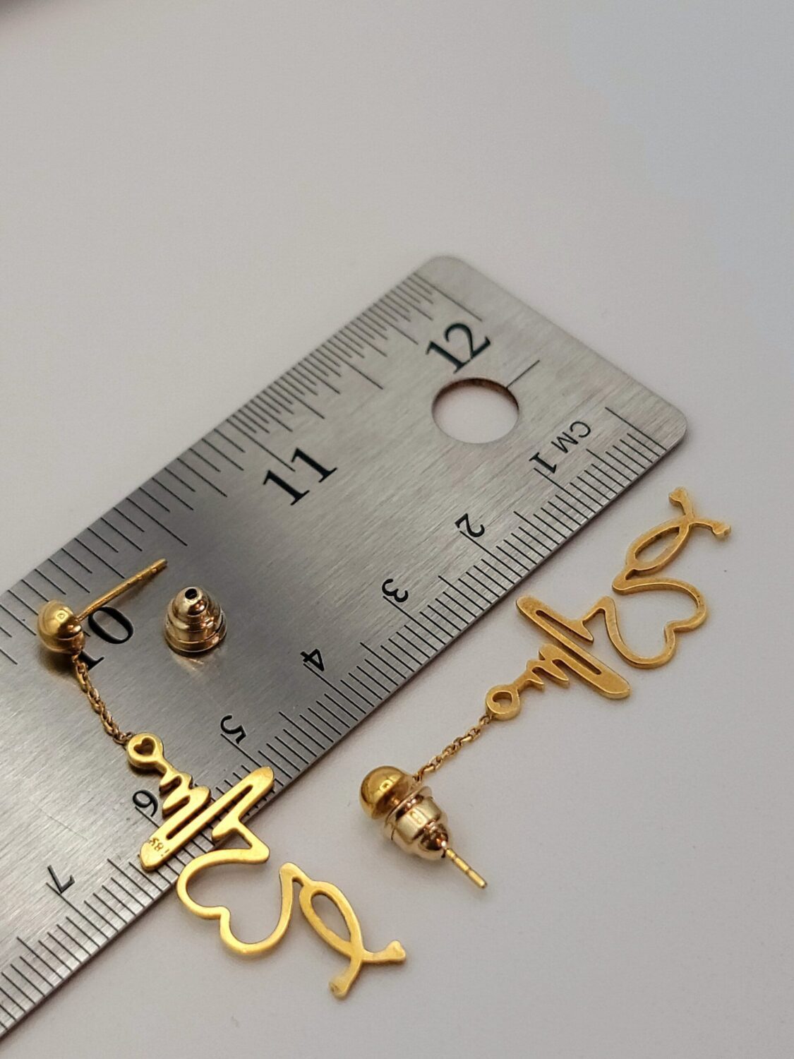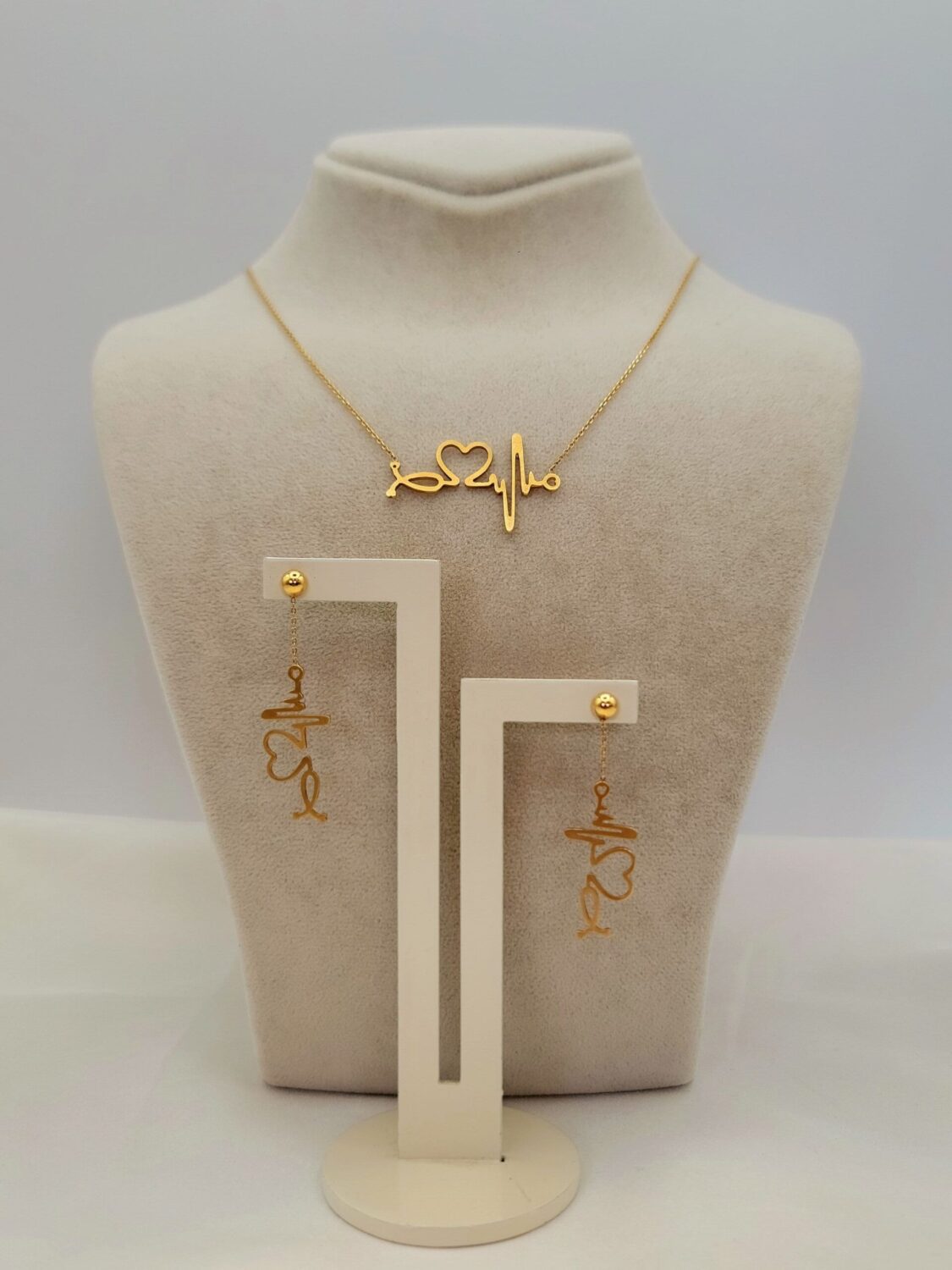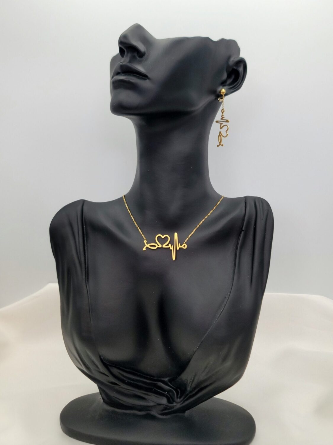 18K Solid Gold Love Heartbeat Choker Necklace with 18K Solid Gold Love Heartbeat Floating Studs Earrings. 18K Gold Half Set for Women!