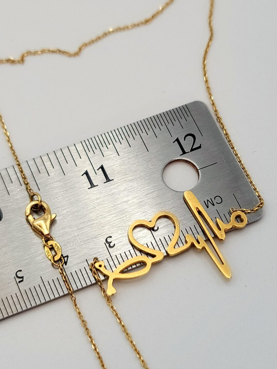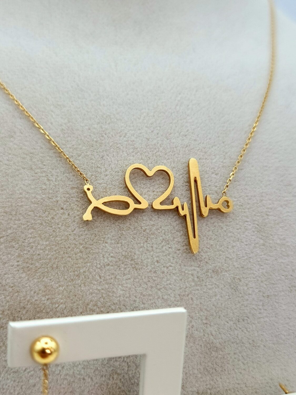18K Solid Gold Love Heartbeat Choker Necklace, 18K Solid Gold Love Heartbeat Floating Studs Earrings,18K Gold Half Set for Women, For Her!