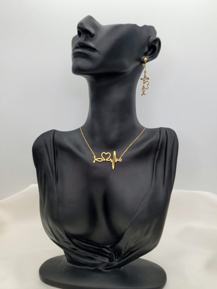 This magnificent love heartbeat necklace sparkles with cable chain that secures with a lobster claw clasp. This unique customized jewelry available as a half set with matching earrings! This set makes you become the center of attention. Ladies!