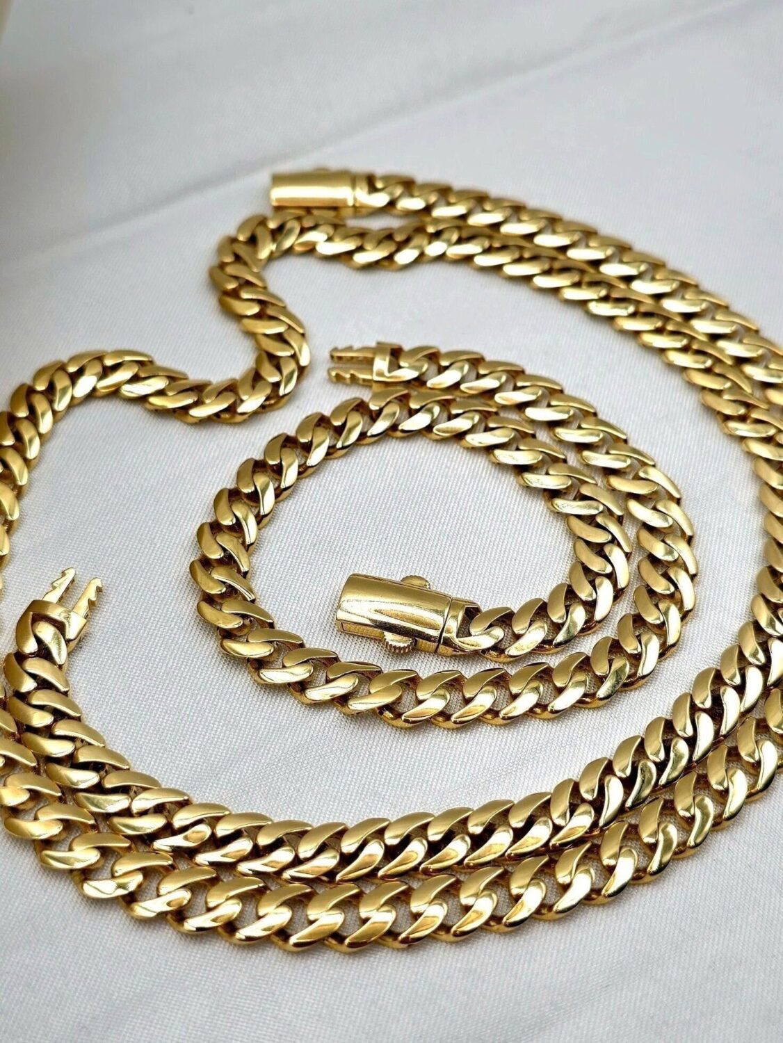 Expertly handcrafted 18K real gold Monaco chain and bracelet, combining exceptional craftsmanship with high-end quality and durability. We ensure unparalleled quality and attention to detail, while offering unbeatable prices that make this real gold chain set accessible to all. Strong to hold your favorite pendant or ring. Perfect for everyday use and any occasion, ideal for men and women. A thoughtful gift idea for Christmas, anniversaries, birthdays, and other special milestones. Experience the perfect fusion of style, sophistication, and value with our premium 18K gold chains.