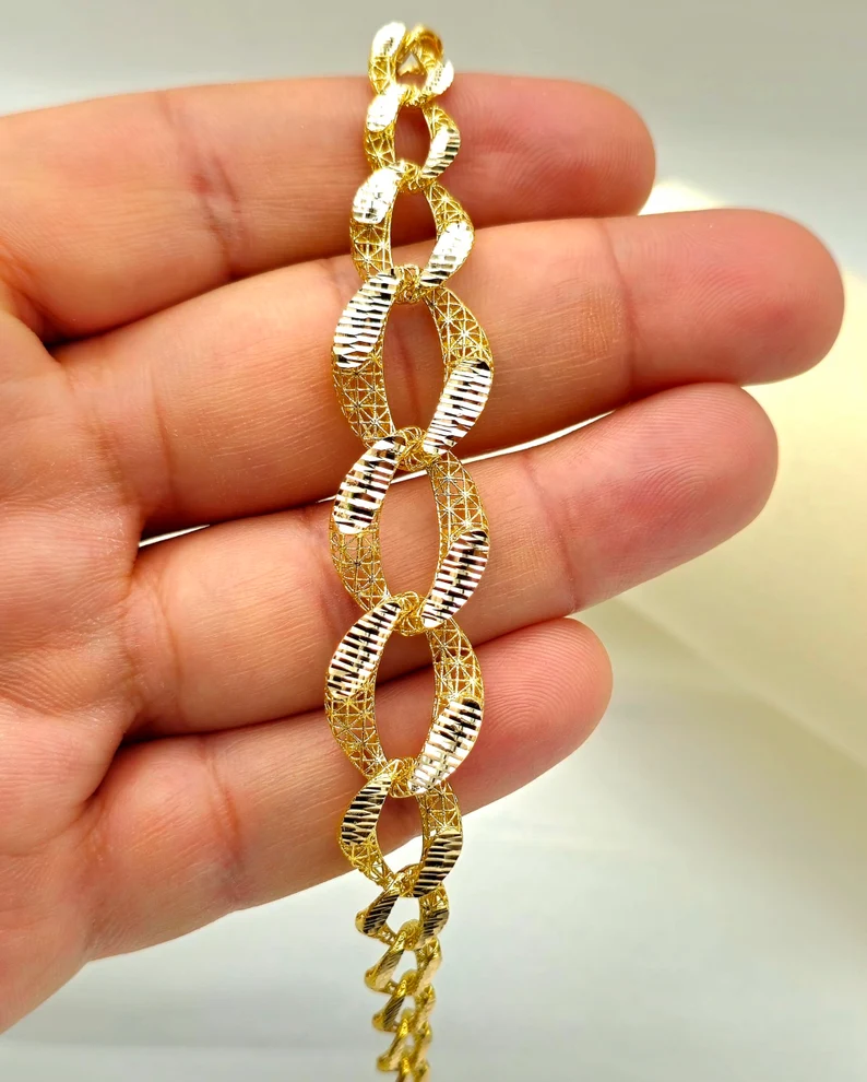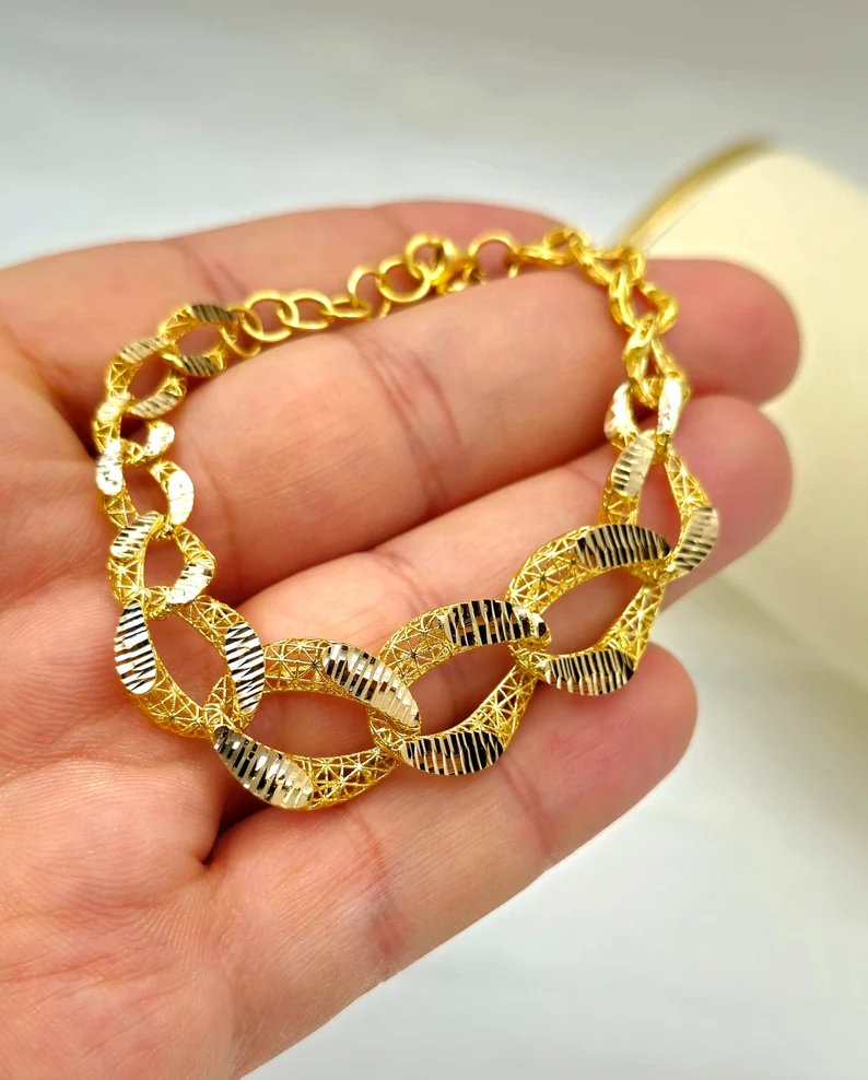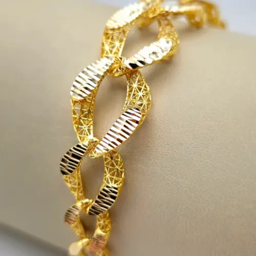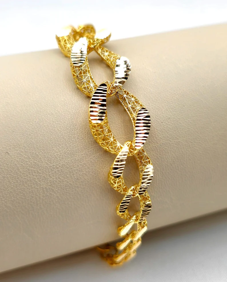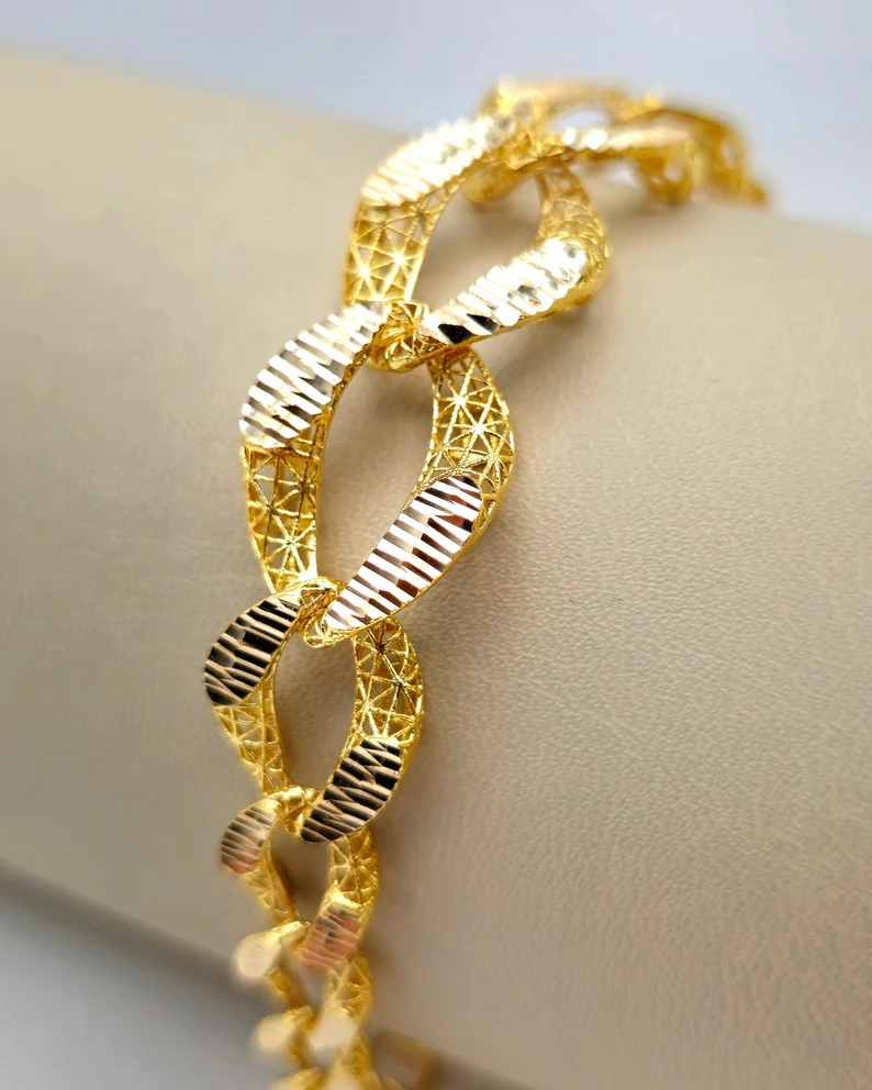 Chain style: Paperclip, Speciality Design Diamond-cut Bracelet – 18K Gold