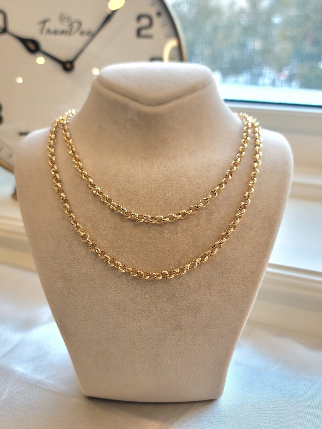 4 reviews for 18K Solid Gold Rolo Chain Necklace/ 18K Yellow Pure Gold Rolo Links Chain 5MM, 16″- 22″ Lengths/ Real 18K Gold Chain for Men & Women, Gift!