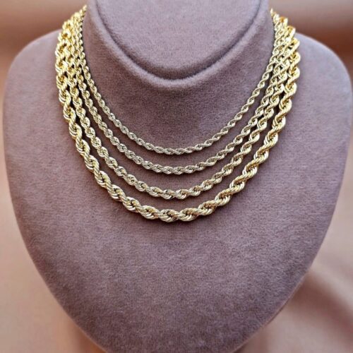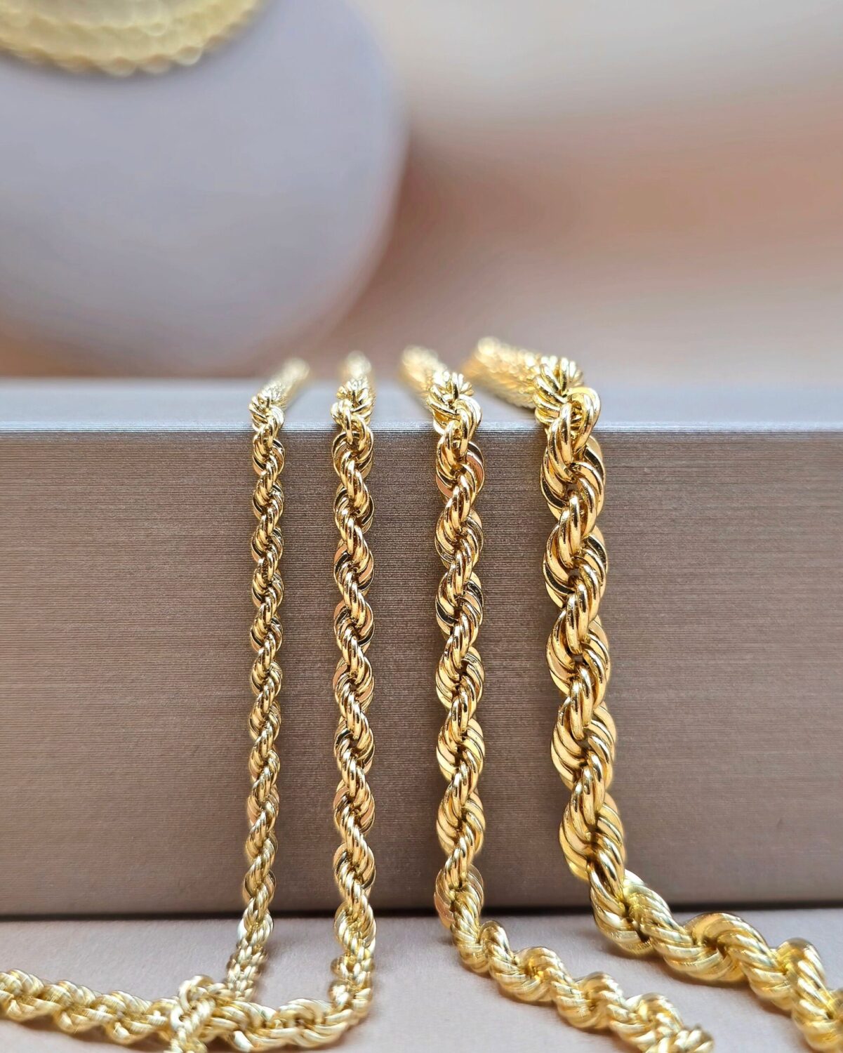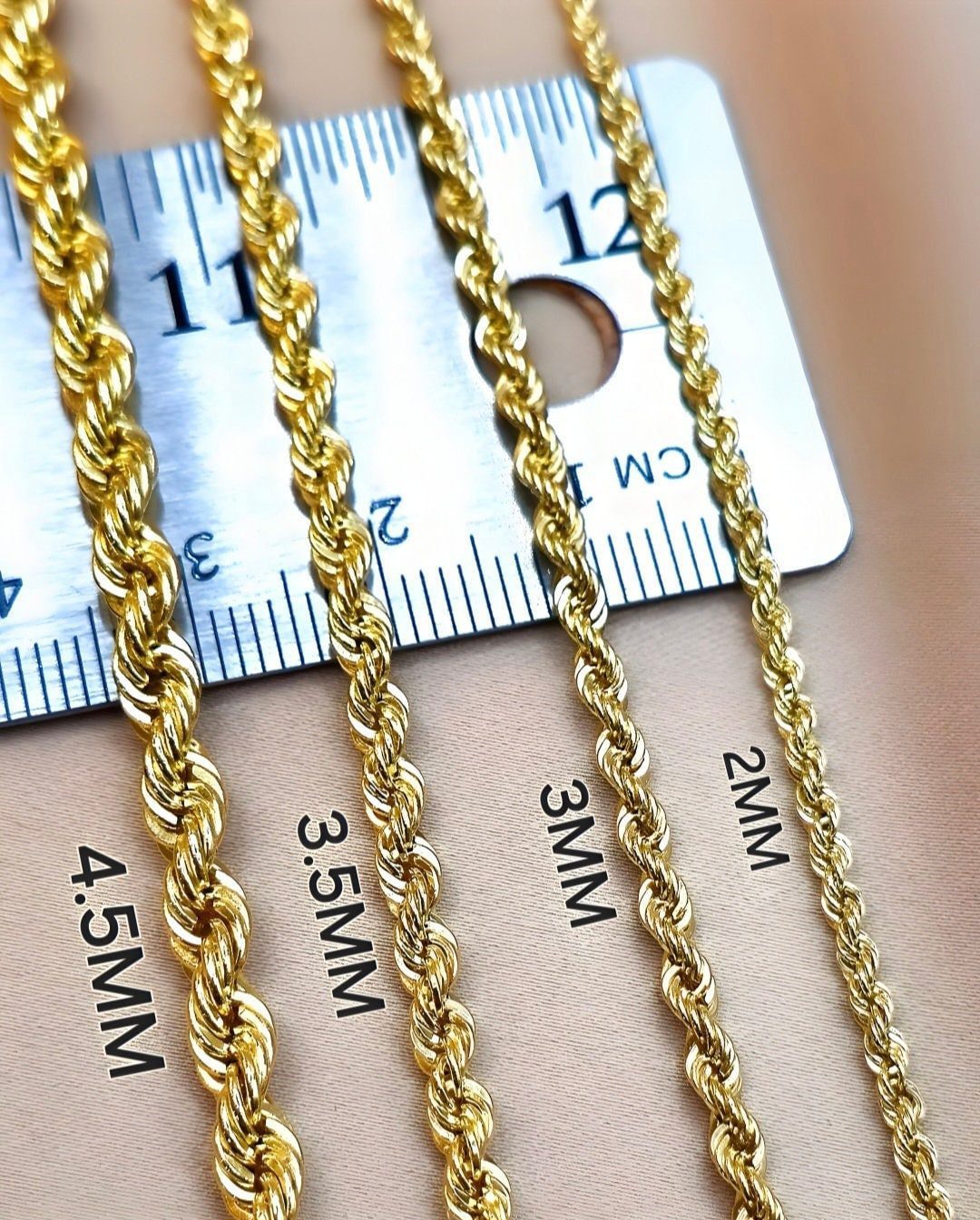 Elevate your style with our expertly handcrafted 18K real gold Rope chains, combining exceptional craftsmanship with high-end quality and durability. We ensure unparalleled quality and attention to detail, while offering unbeatable prices that make this real gold jewelry chain accessible to all. Perfect for everyday use and any occasion, ideal for men and women. A thoughtful gift idea for Christmas, anniversaries, birthdays, and other special milestones. Experience the perfect fusion of style, sophistication, and value with our premium 18K gold Rope chains.