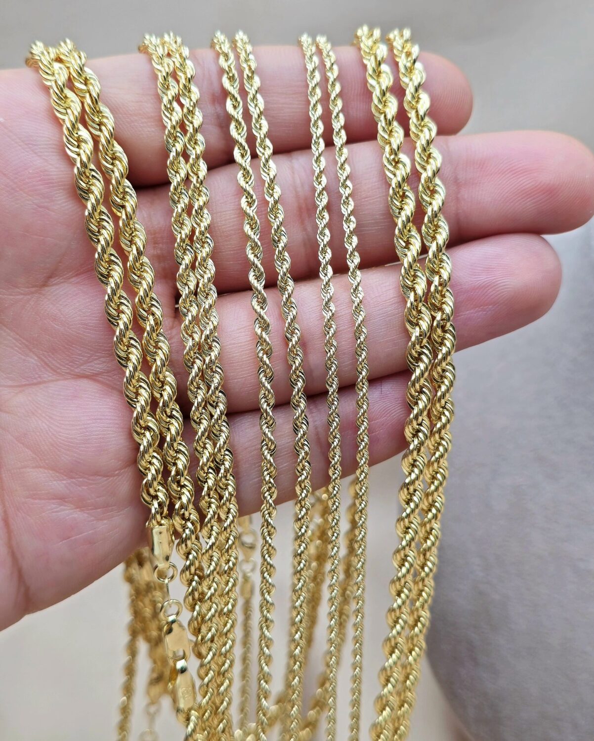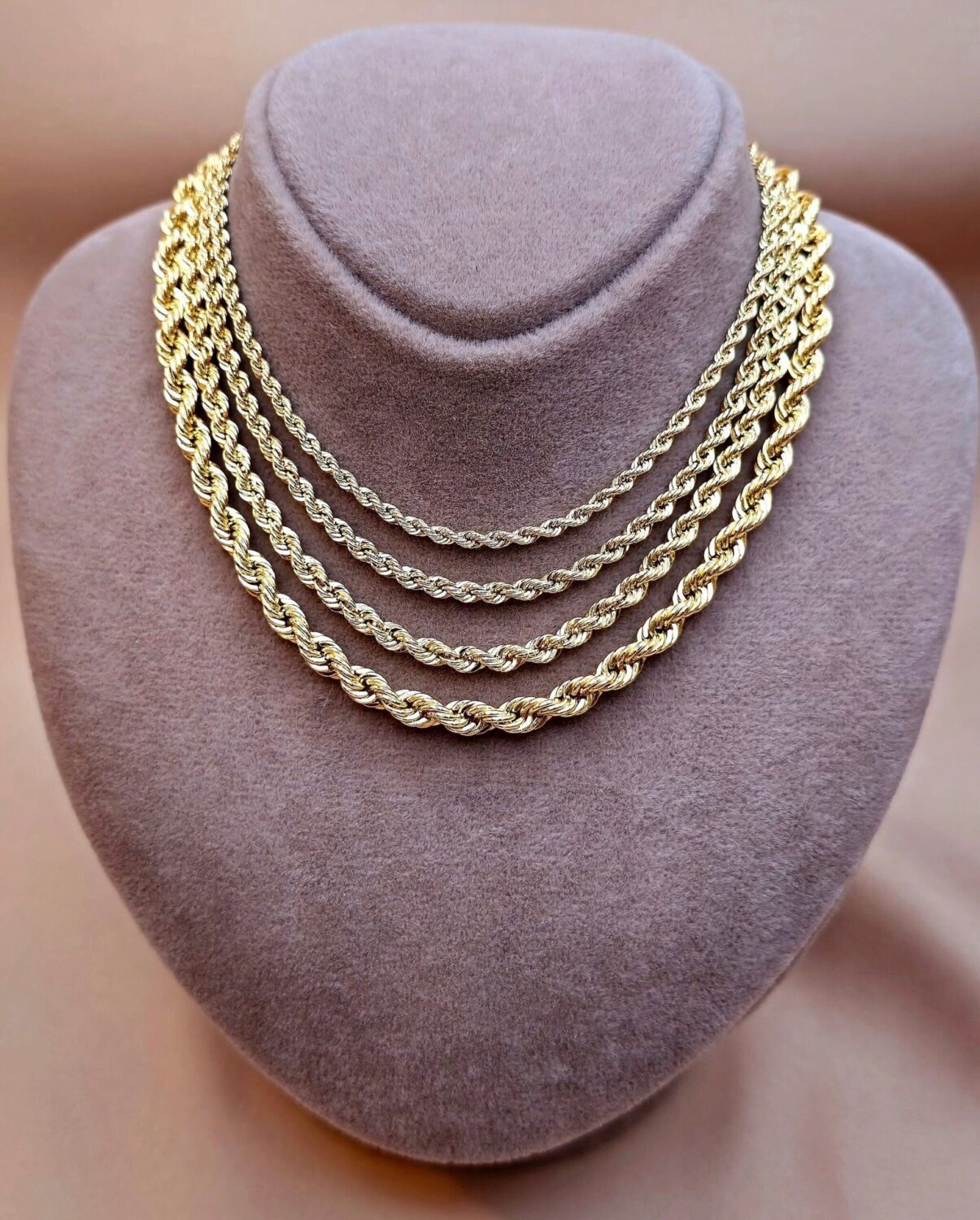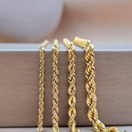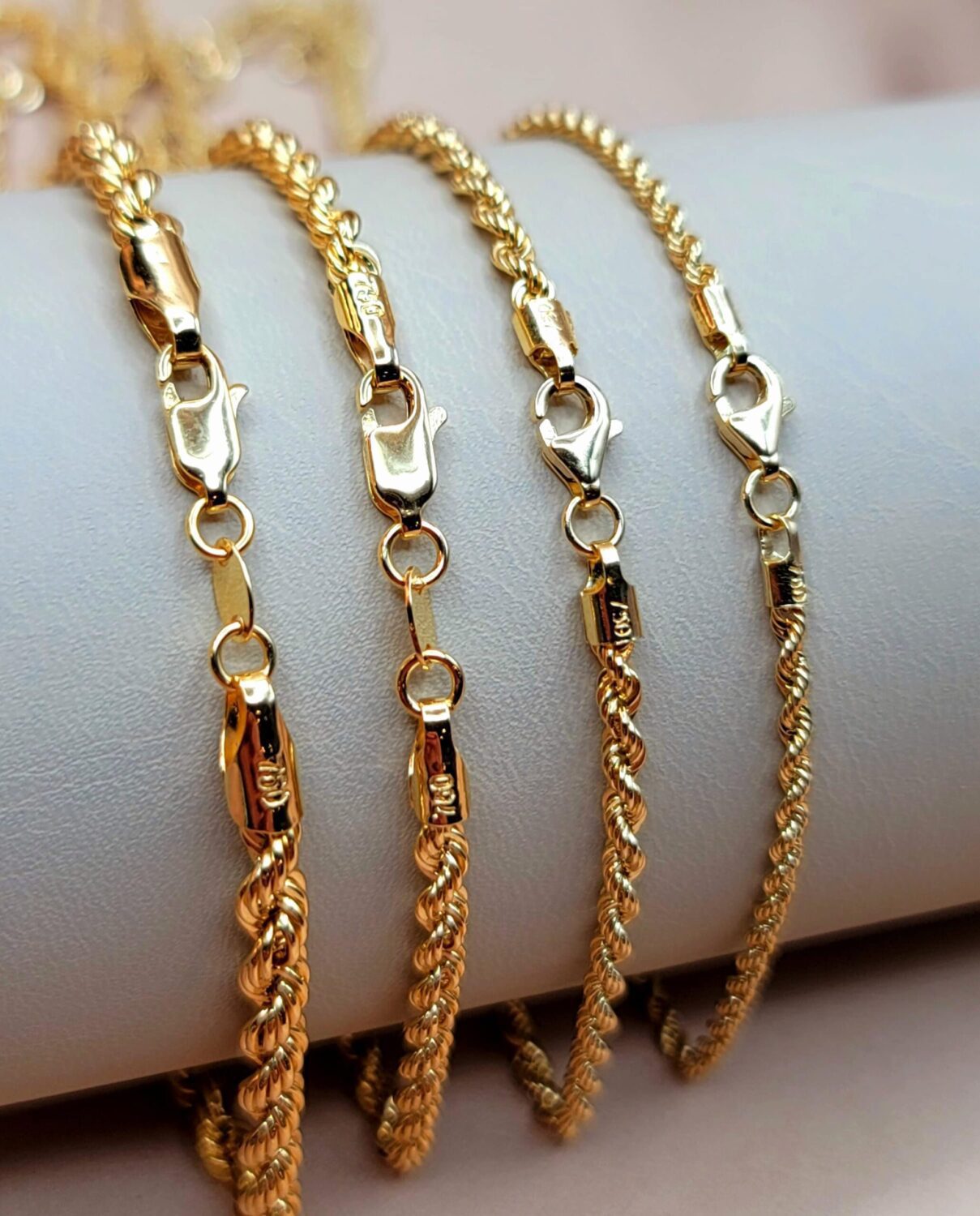 Elevate your style with our expertly handcrafted 18K real gold Rope chains, combining exceptional craftsmanship with high-end quality and durability. We ensure unparalleled quality and attention to detail, while offering unbeatable prices that make this real gold jewelry chain accessible to all. Perfect for everyday use and any occasion, ideal for men and women. A thoughtful gift idea for Christmas, anniversaries, birthdays, and other special milestones. Experience the perfect fusion of style, sophistication, and value with our premium 18K gold Rope chains.