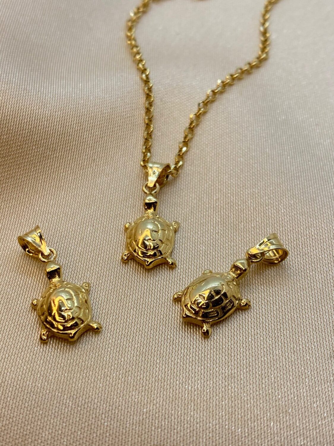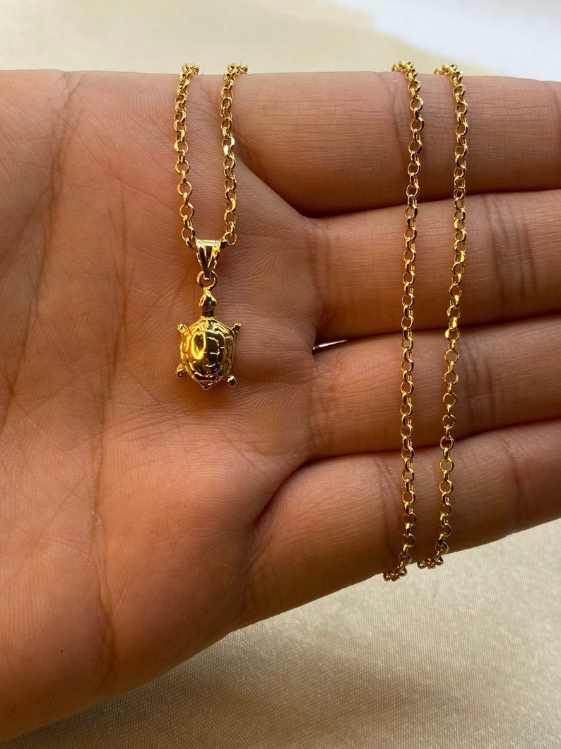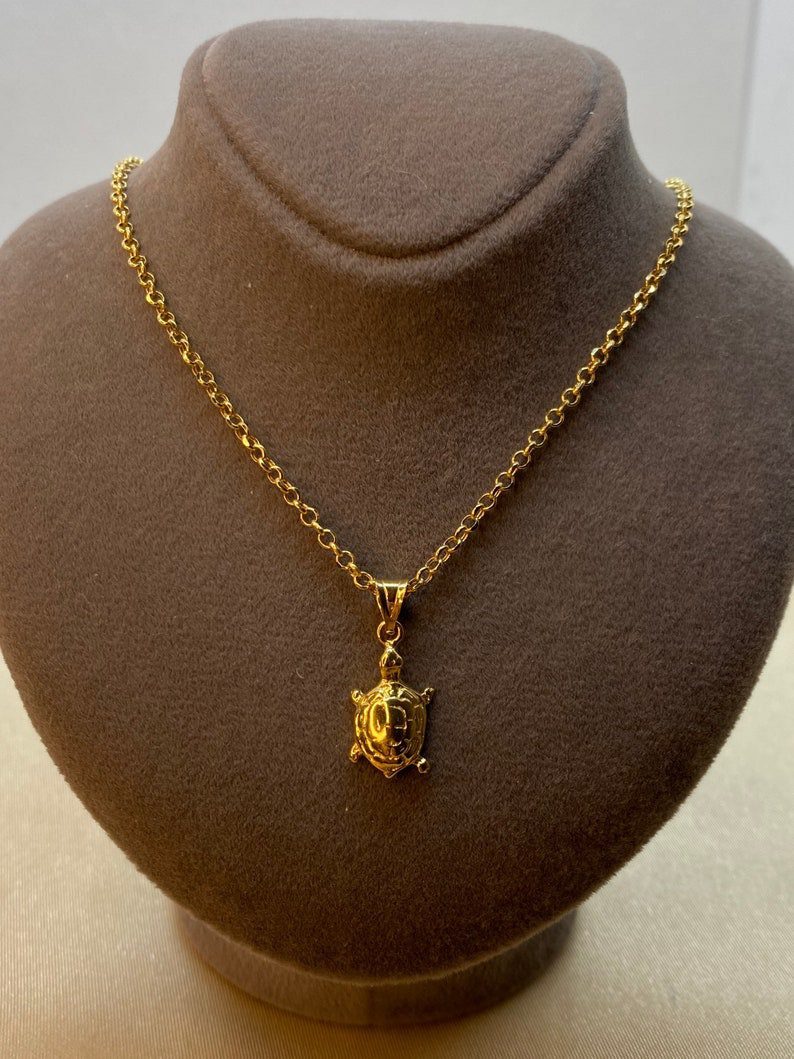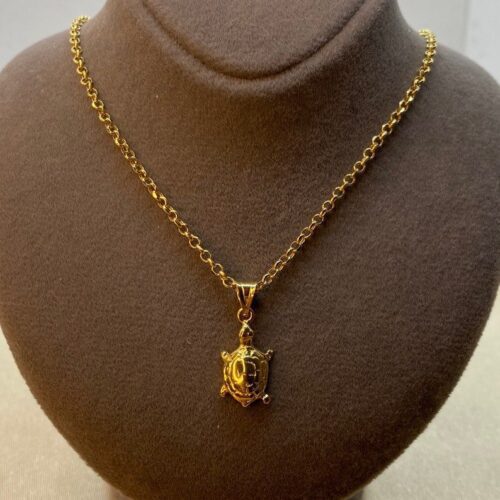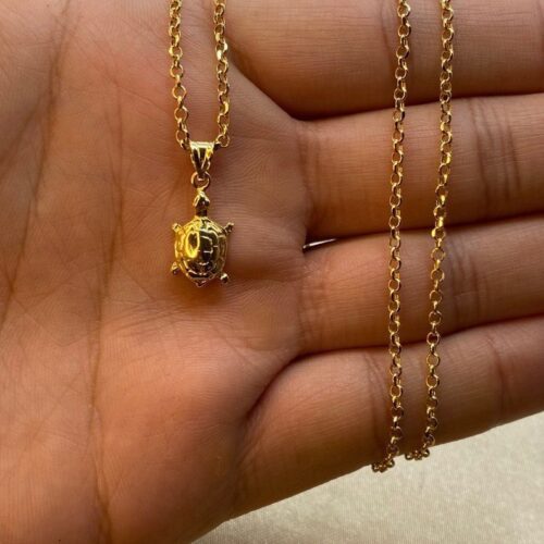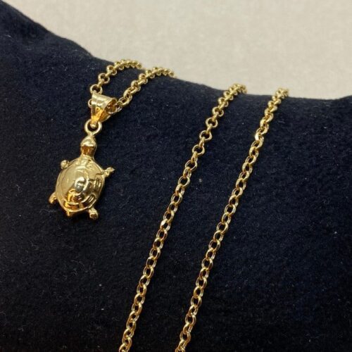 18k Gold Turtle Necklace 3.69gr , 19.5″ , 1.5mm rolo chain