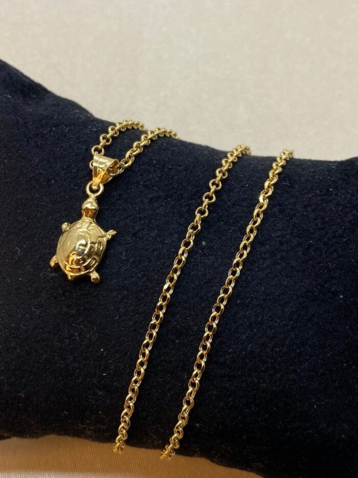 18k Gold Turtle Necklace 3.69gr , 19.5″ , 1.5mm rolo chain