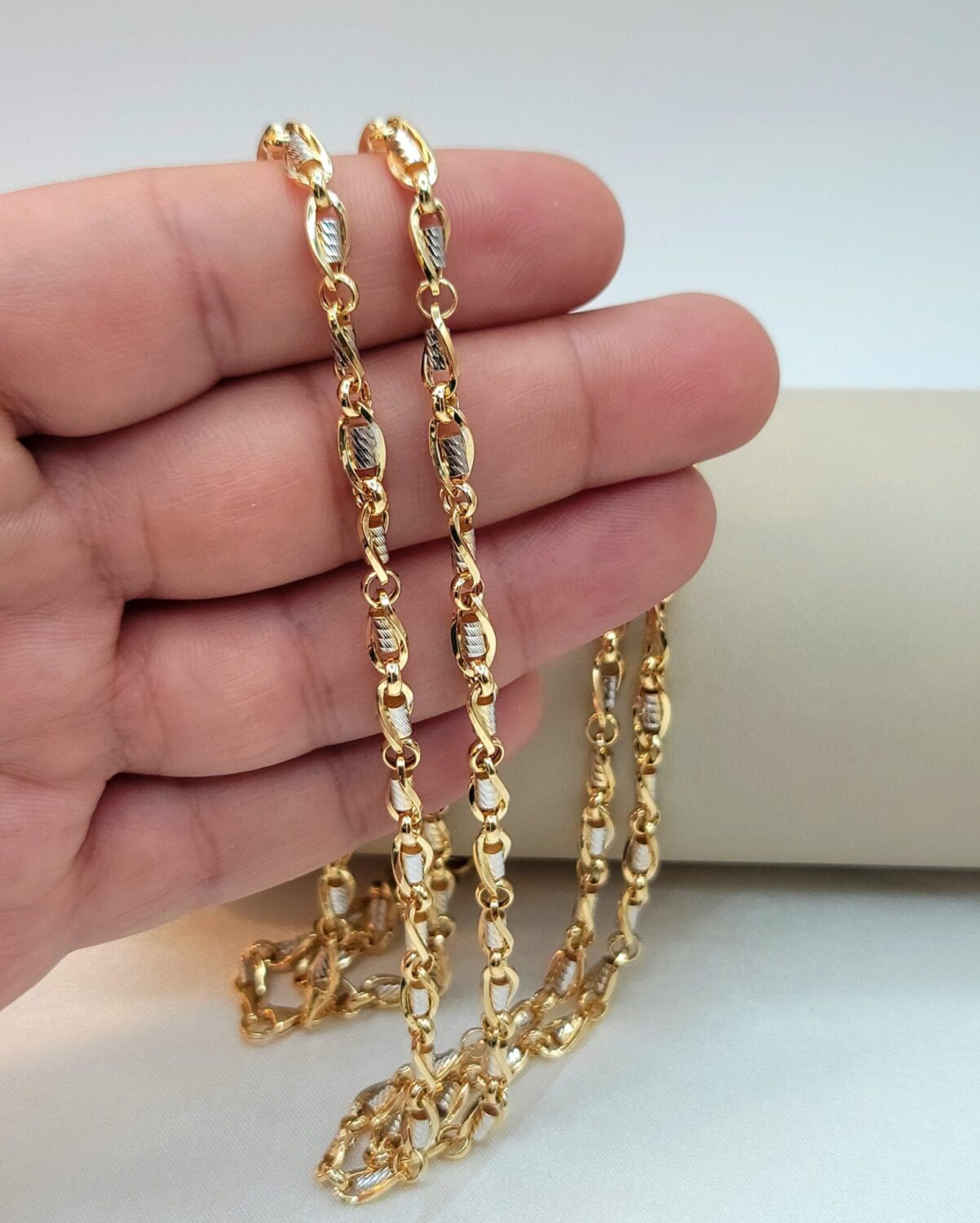 Style: Curbed Cable – 18K Yellow & White Gold (two tone color)