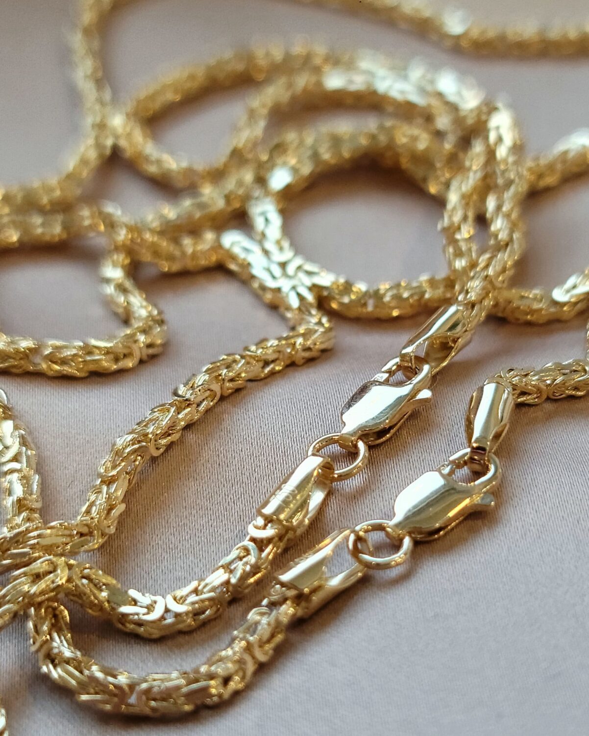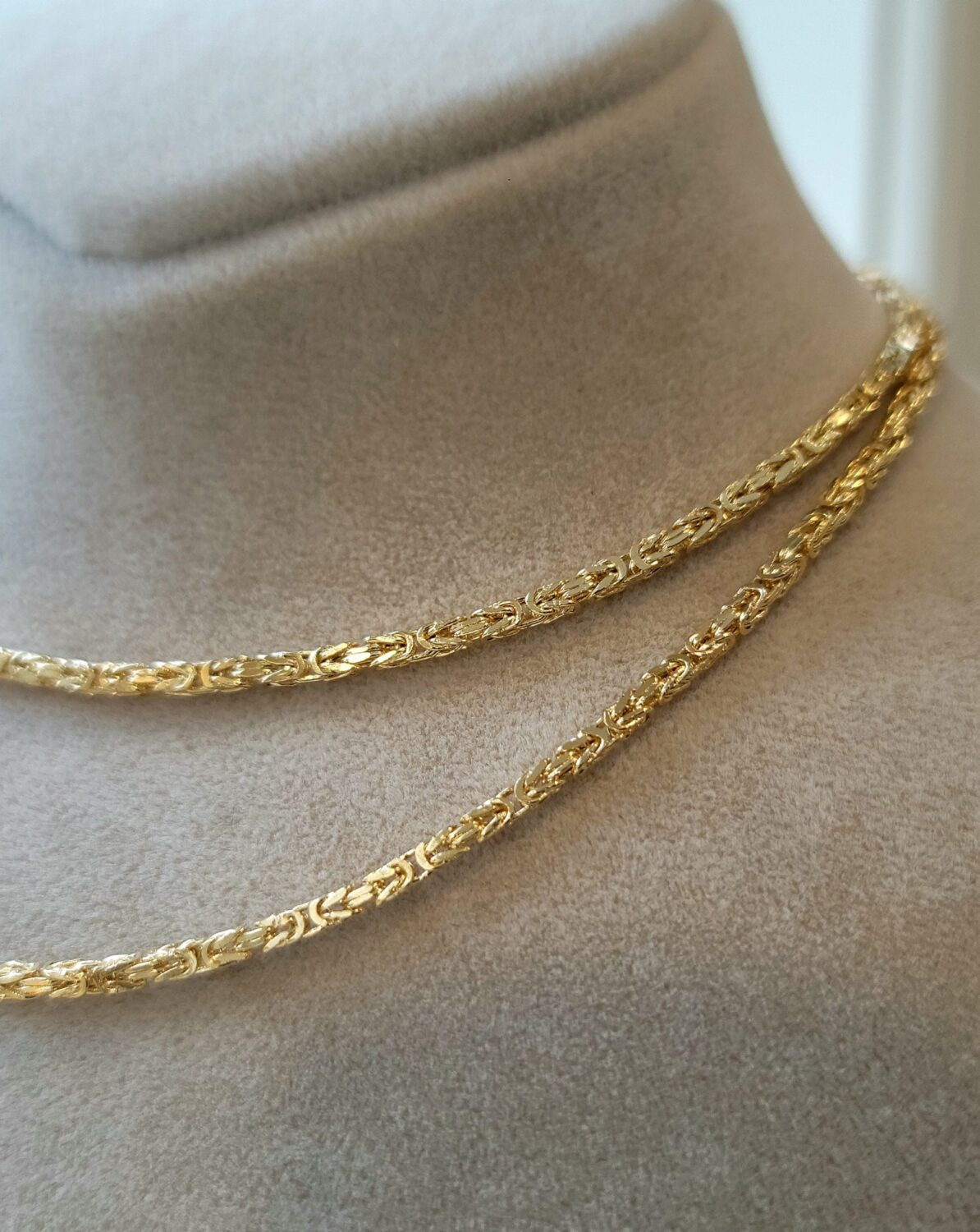 * A gold Byzantine chain necklace is an accessory that instantly takes your style to the next level; Wear it all day, Everyday. it’s also very study to hold your favorite pendant or ring!