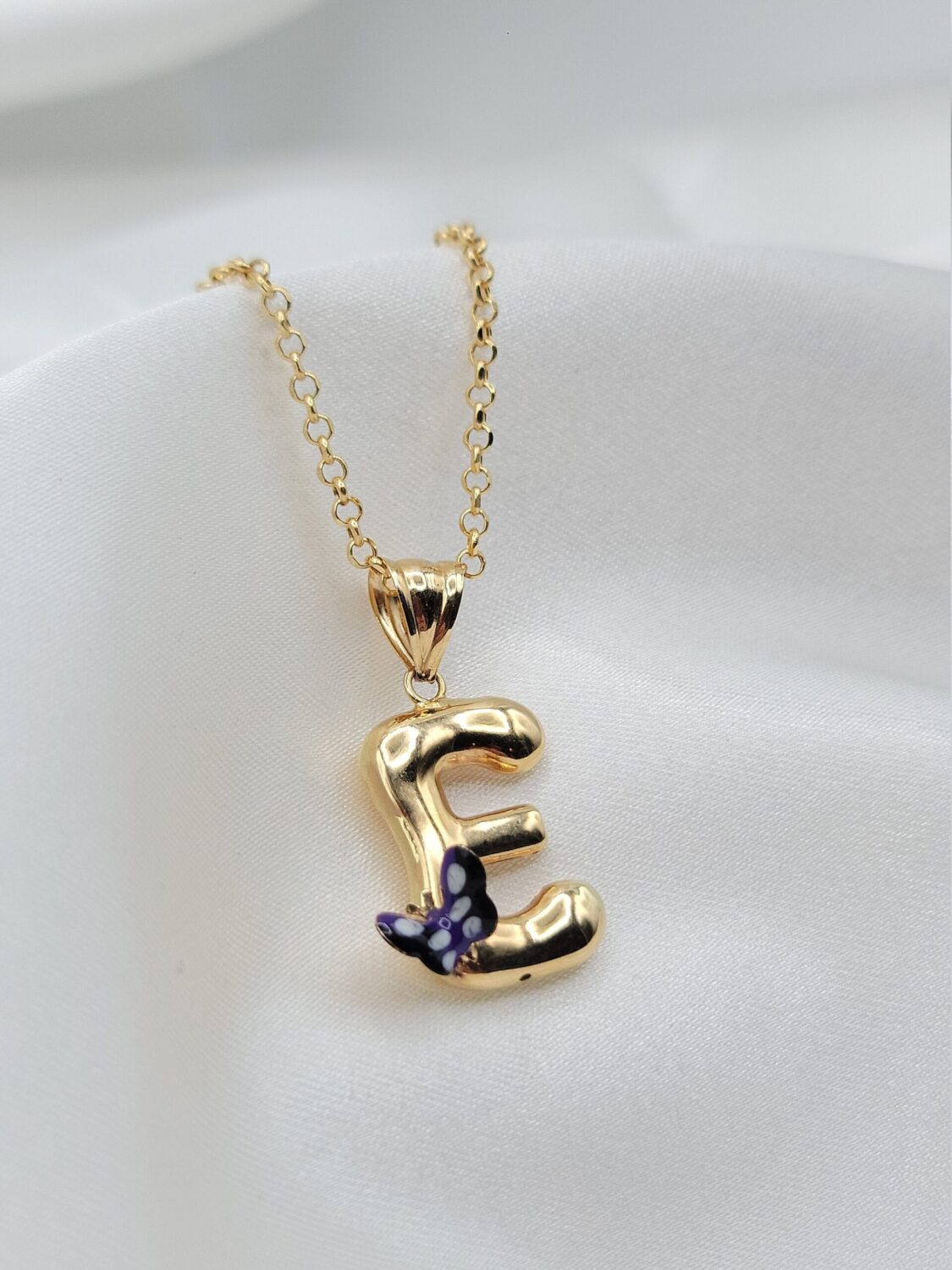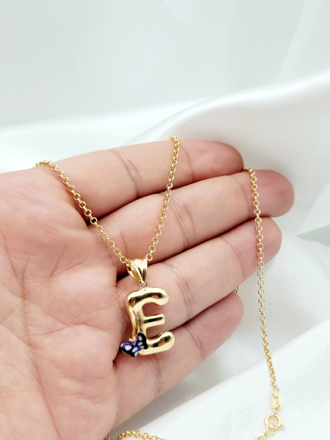 18K Solid Gold Initial Necklace. Exclusive design and charming. 18K solid gold letter “E” necklace. A perfect gift for her for any ceremony.