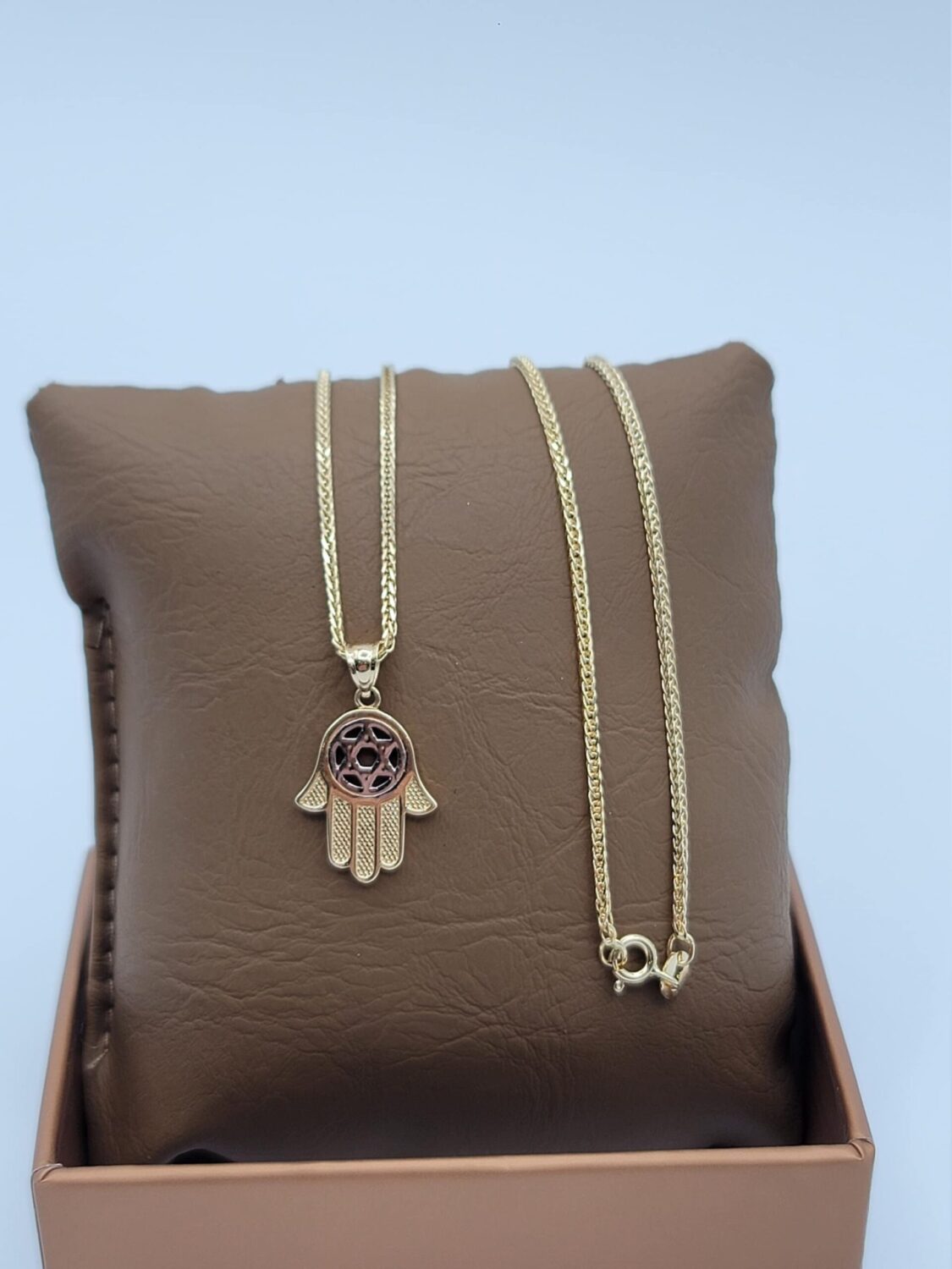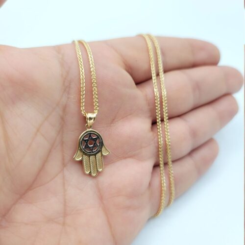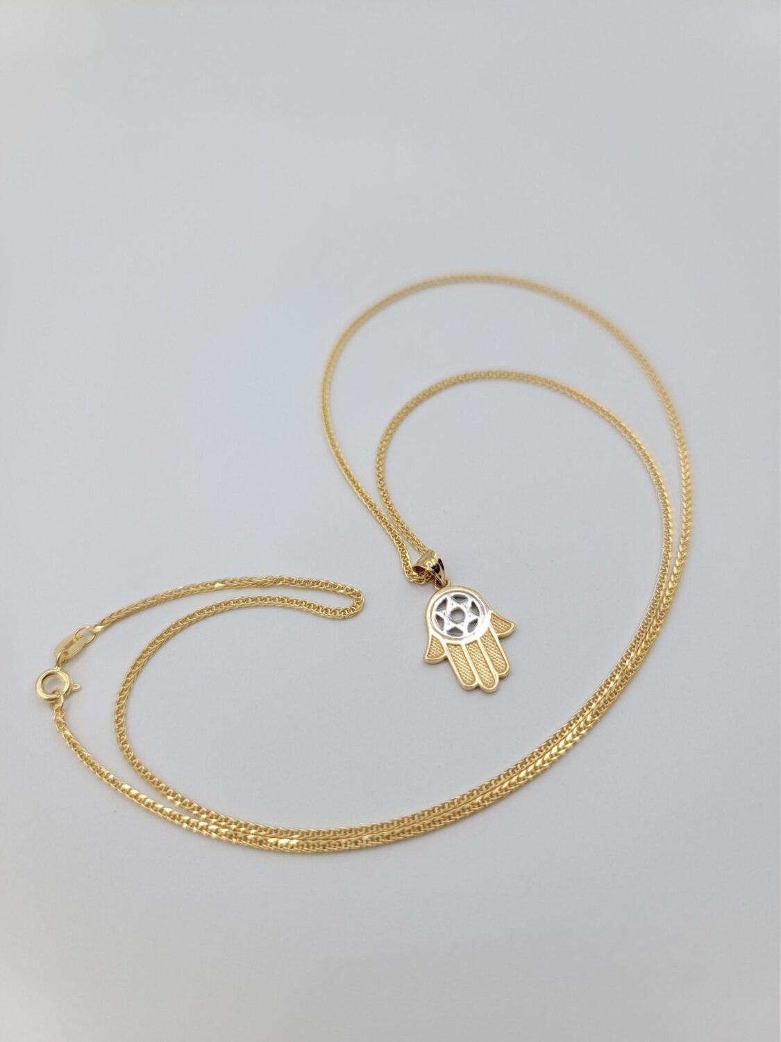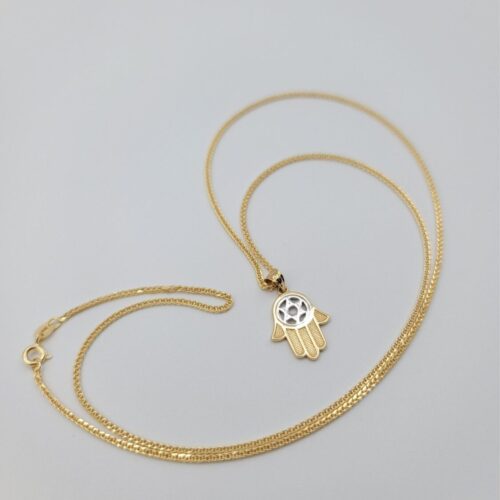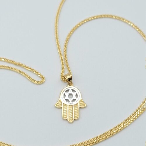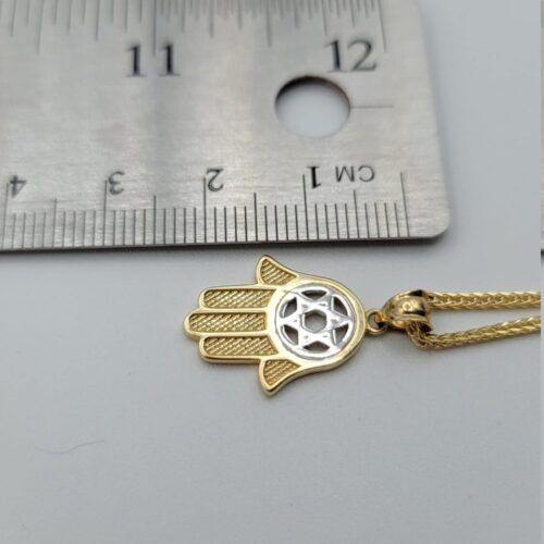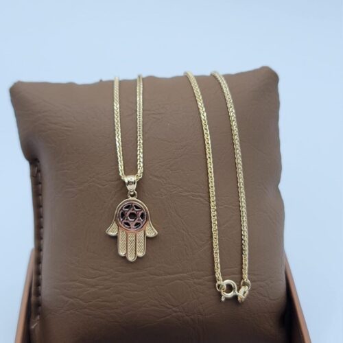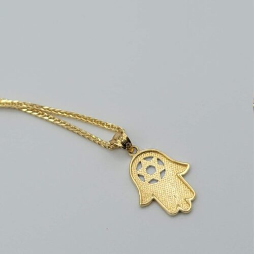 Be the first to review “A lovely 14K Lucky Hamsa Necklace. Designed With Star Of David. Foxtail Style Chain And Dimond Cut Pendant. 3.81gr (Chain & Pendant)”