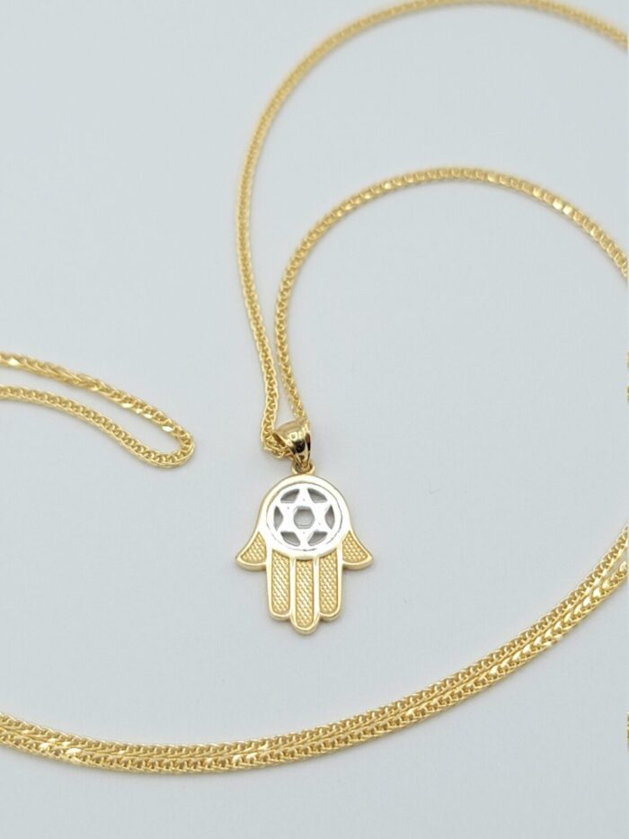 Be the first to review “A lovely 14K Lucky Hamsa Necklace. Designed With Star Of David. Foxtail Style Chain And Dimond Cut Pendant. 3.81gr (Chain & Pendant)”