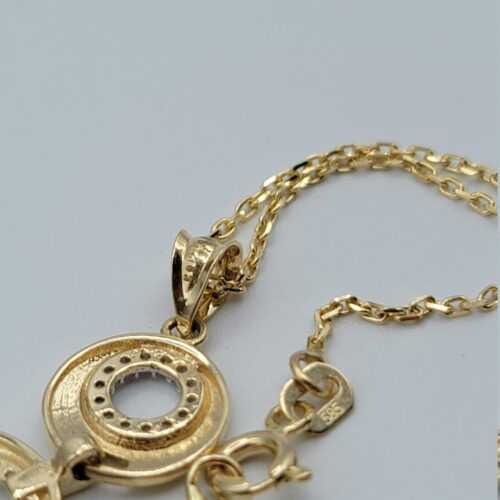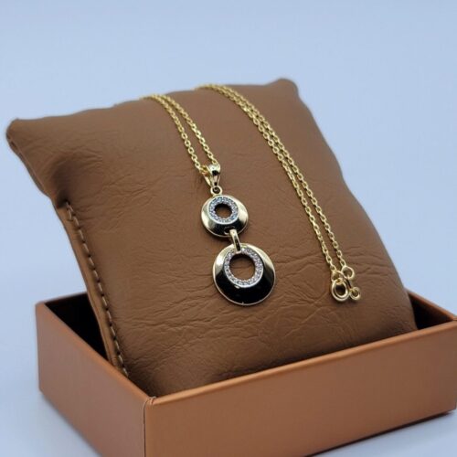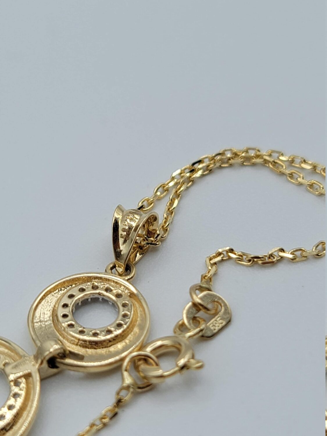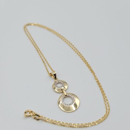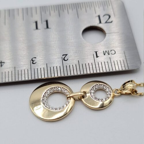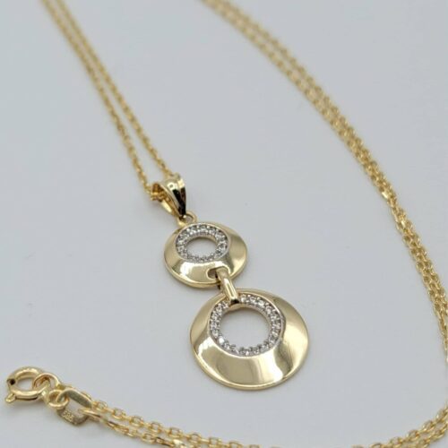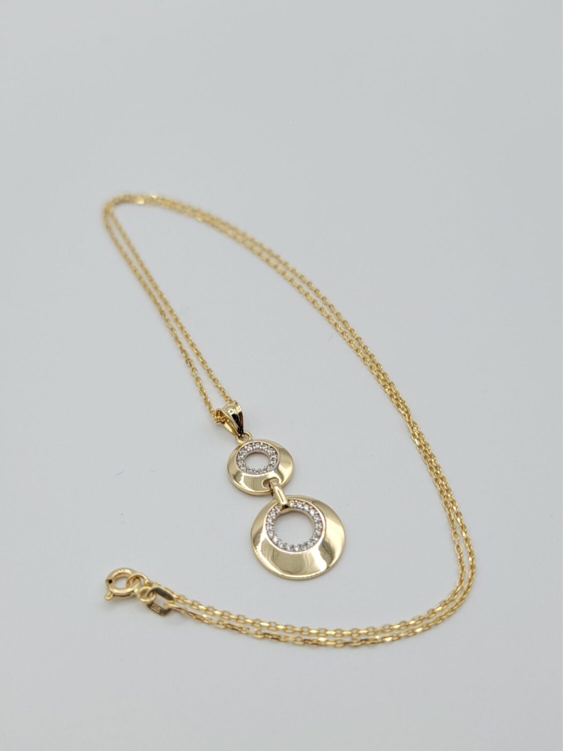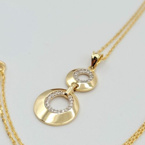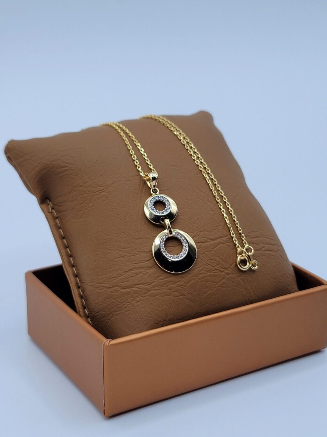 14K Solid Gold Two Circle Mia Floating Necklace. Flat Cable Chain, Double Round Stone Pendant. 3.67gr (Chain & Pendant) Gift For Her!