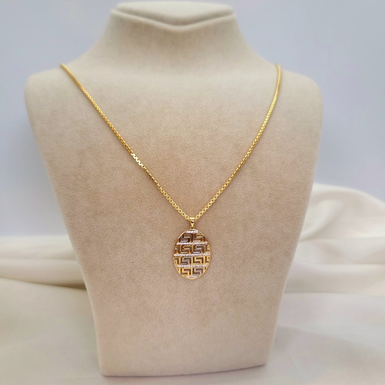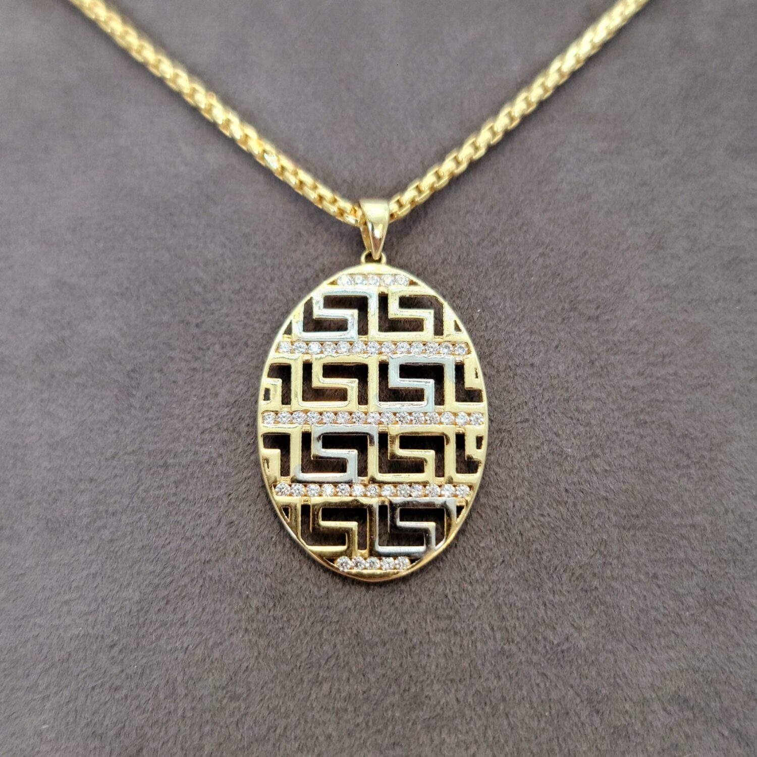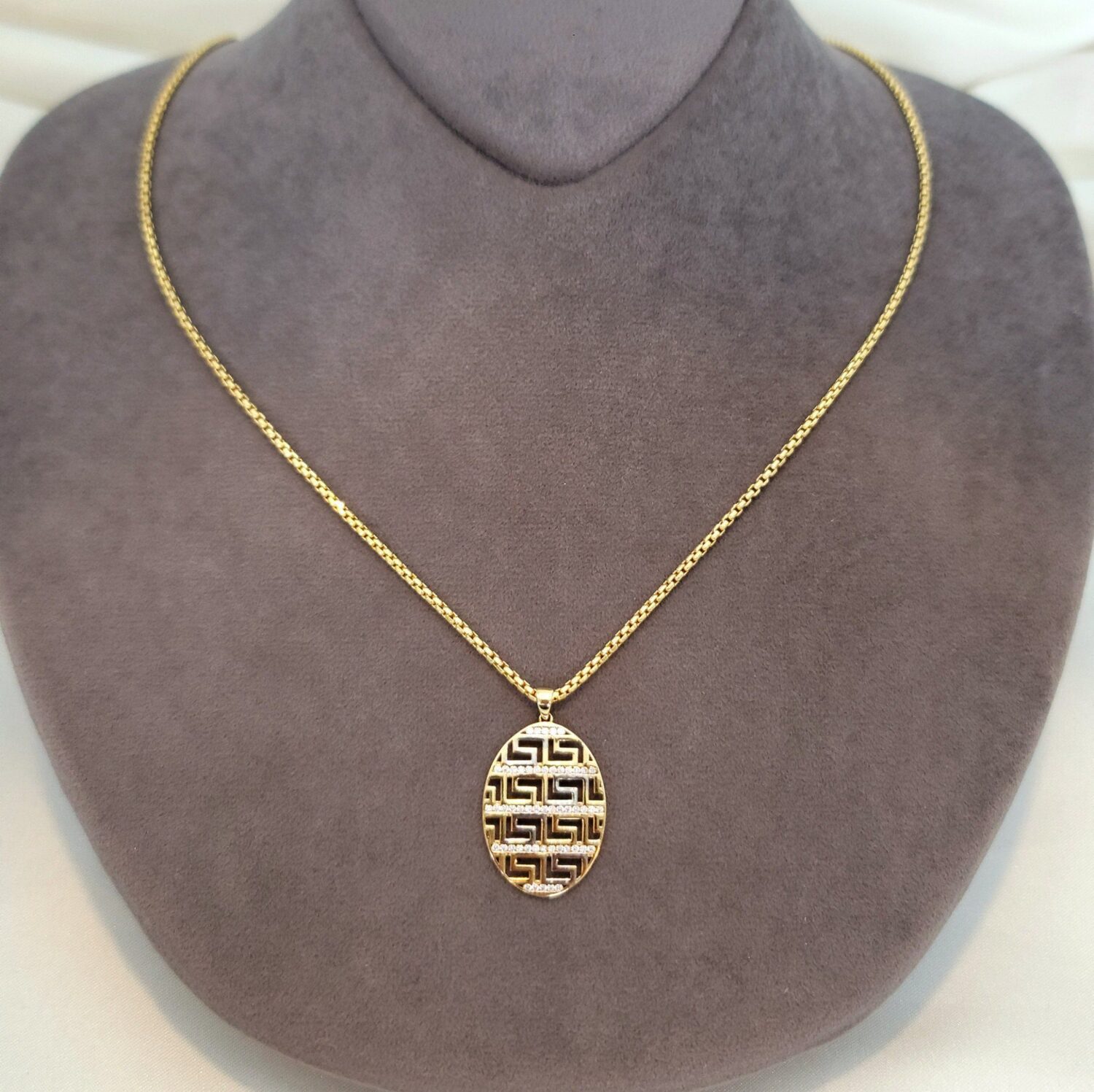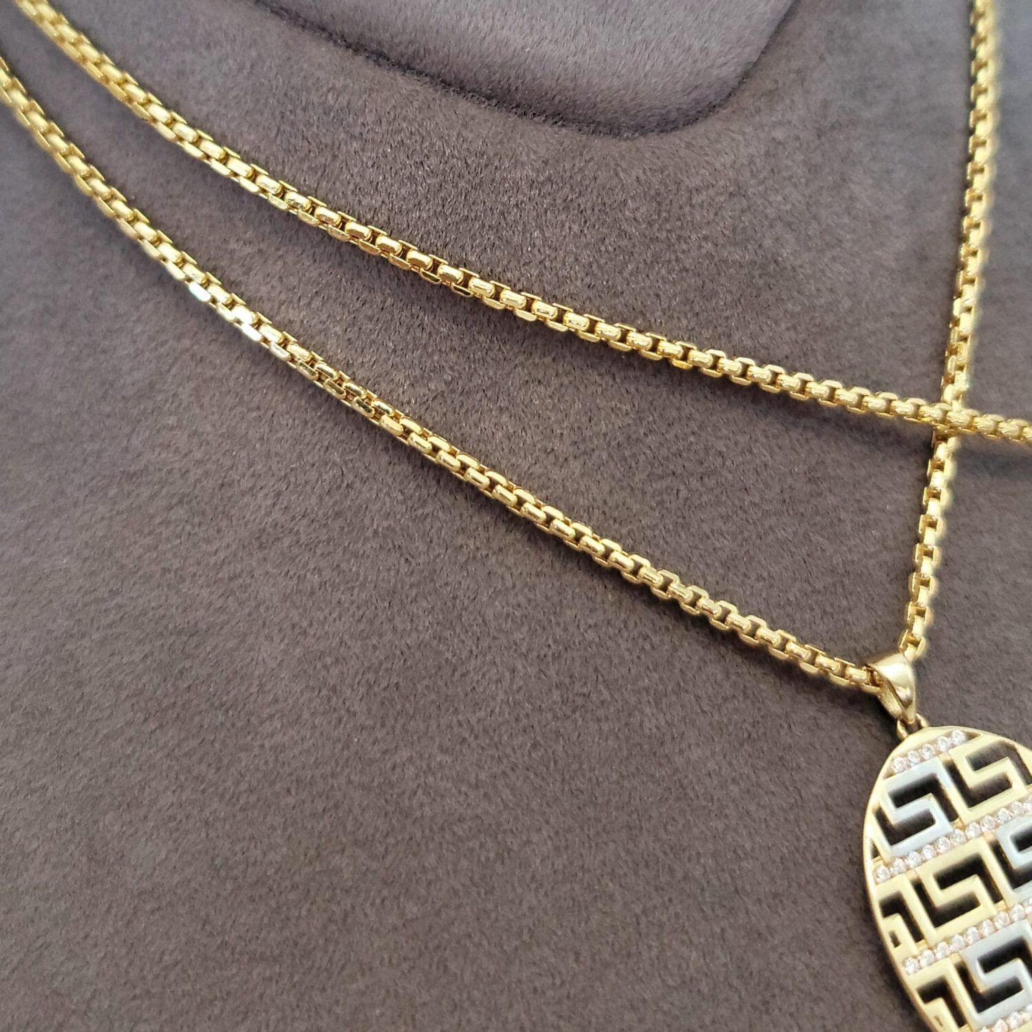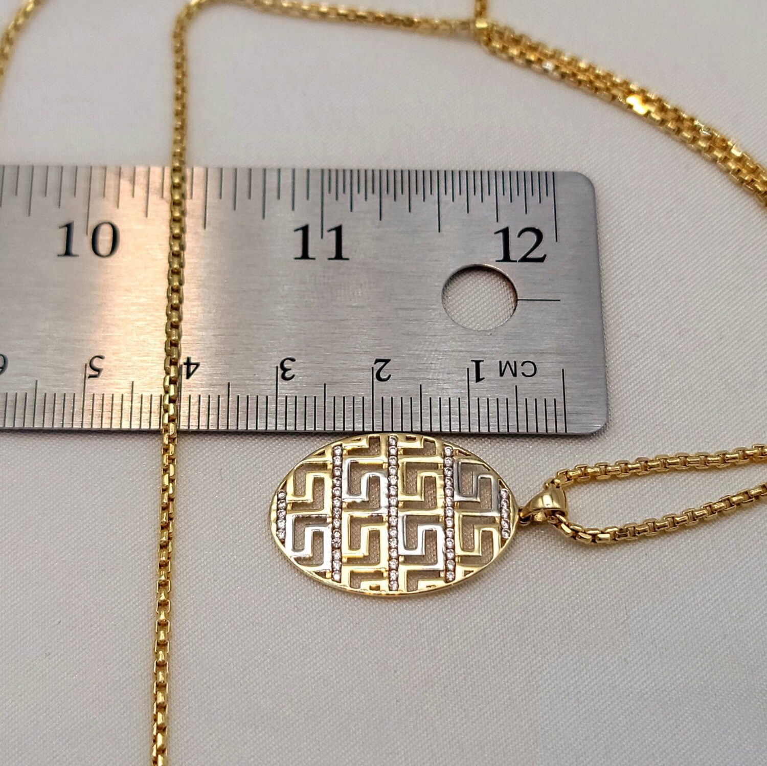 Greek Design Necklace/ Gold Charm Necklace! Women Long 14K Solid Gold Charm Necklace/ 14K Solid Gold Round Diamond-cut Box Chain Necklace for Her/ Italian Design! Anniversary Gift/ Birthday Gift for Her! Mother’s Day Gift!