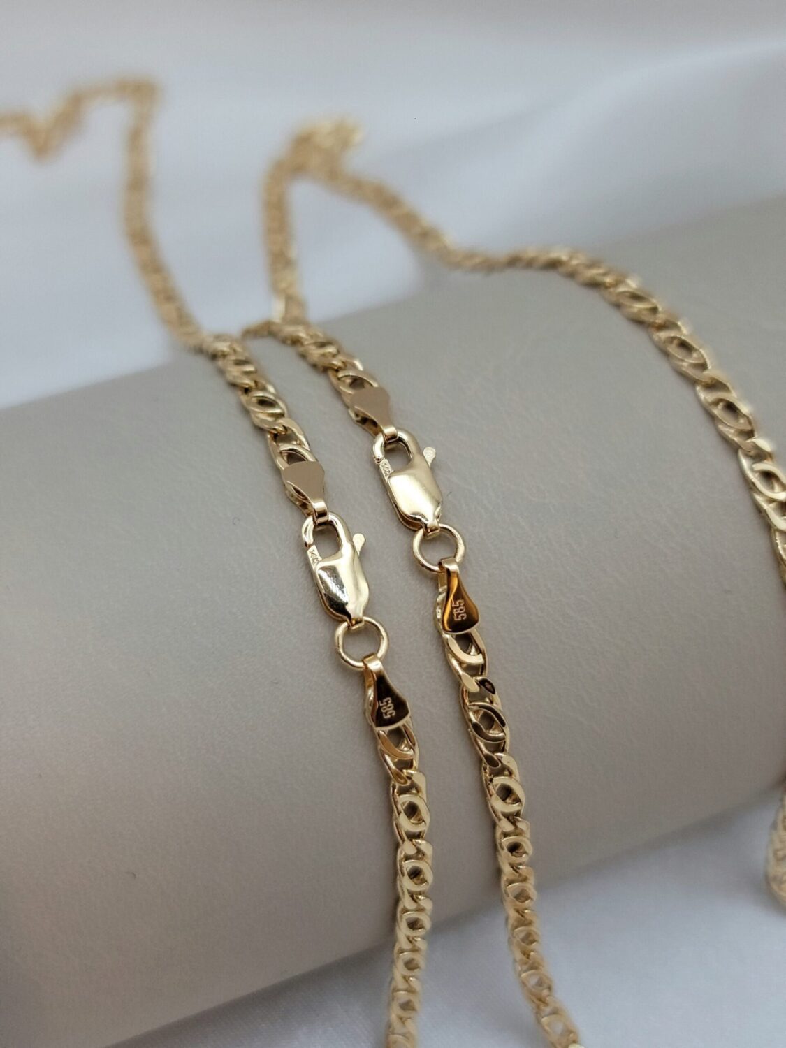 Renowned for its durability and affordability, 14K gold jewelry offers timeless elegance without breaking the bank. Its versatility makes it suitable for any occasion, while its hypoallergenic properties ensure comfortable wear. With a rich appearance that closely resembles higher karat golds, our 14K gold pieces provide a perfect balance of quality and value, adding a touch of luxury to your everyday style. Each authentic, genuine 14K gold piece is marked with a number such as 585 or a 14K stamp, indicating that the jewelry contains 58.5% gold (or 585 parts per thousand).