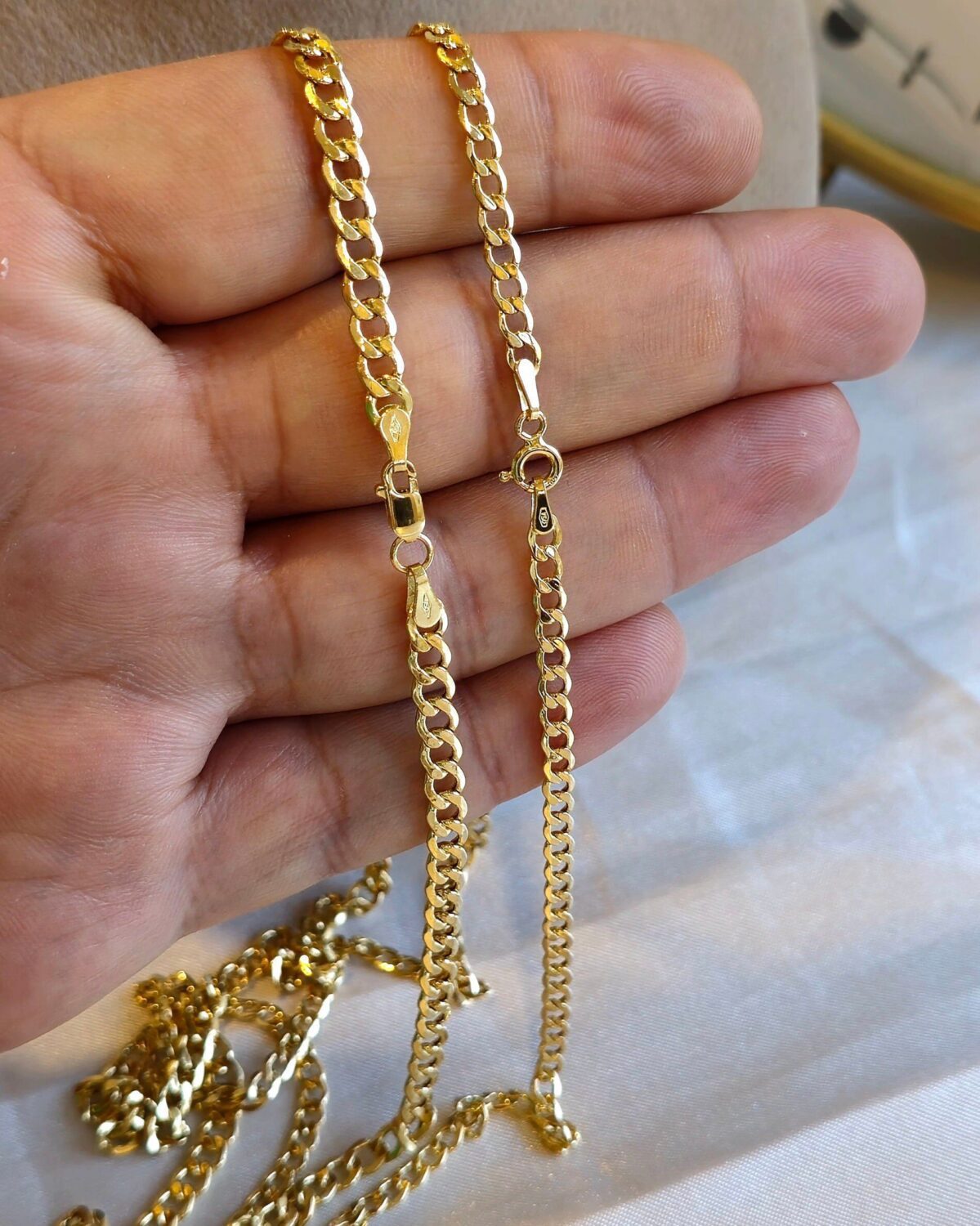 18 Karat gold Curb chains, handcrafted for luxurious style, exceptional quality, and timeless elegance. Perfect for everyday wear or special occasions, suitable for both men and women. A valuable gift idea for Christmas, anniversaries, birthdays, or any occasion that deserves a touch of elegance and sophistication. Easy to layer, wear alone, or pair with your favorite charm. Experience the perfect fusion of style, and value with our premium 18K gold Curb link chains!