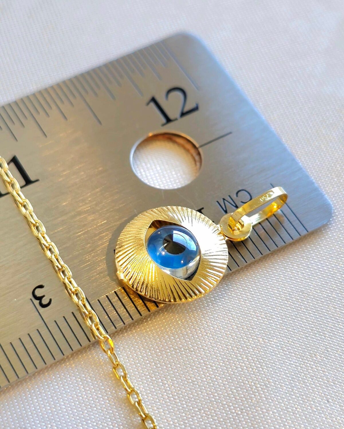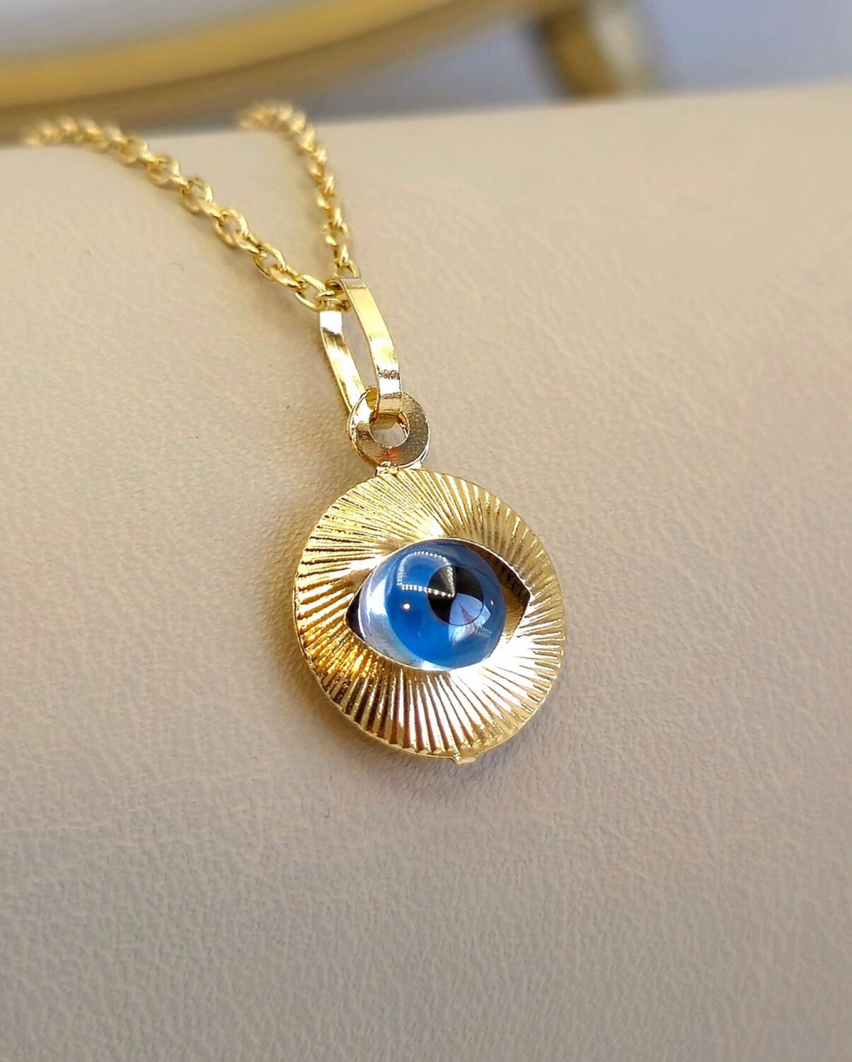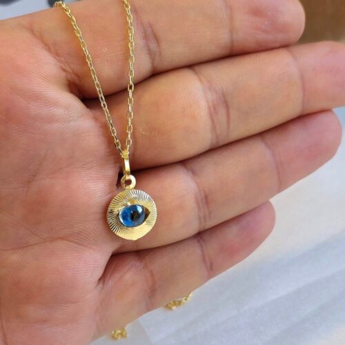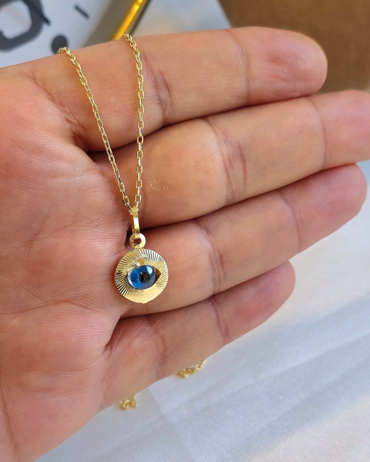 Protect yourself from negative energies with our stunning 18K gold evil eye necklace. This elegant piece features intricate 18K gold detailing, creating a beautiful and meaningful accessory for everyday wear. Birthday gift, anniversary gift, for her!