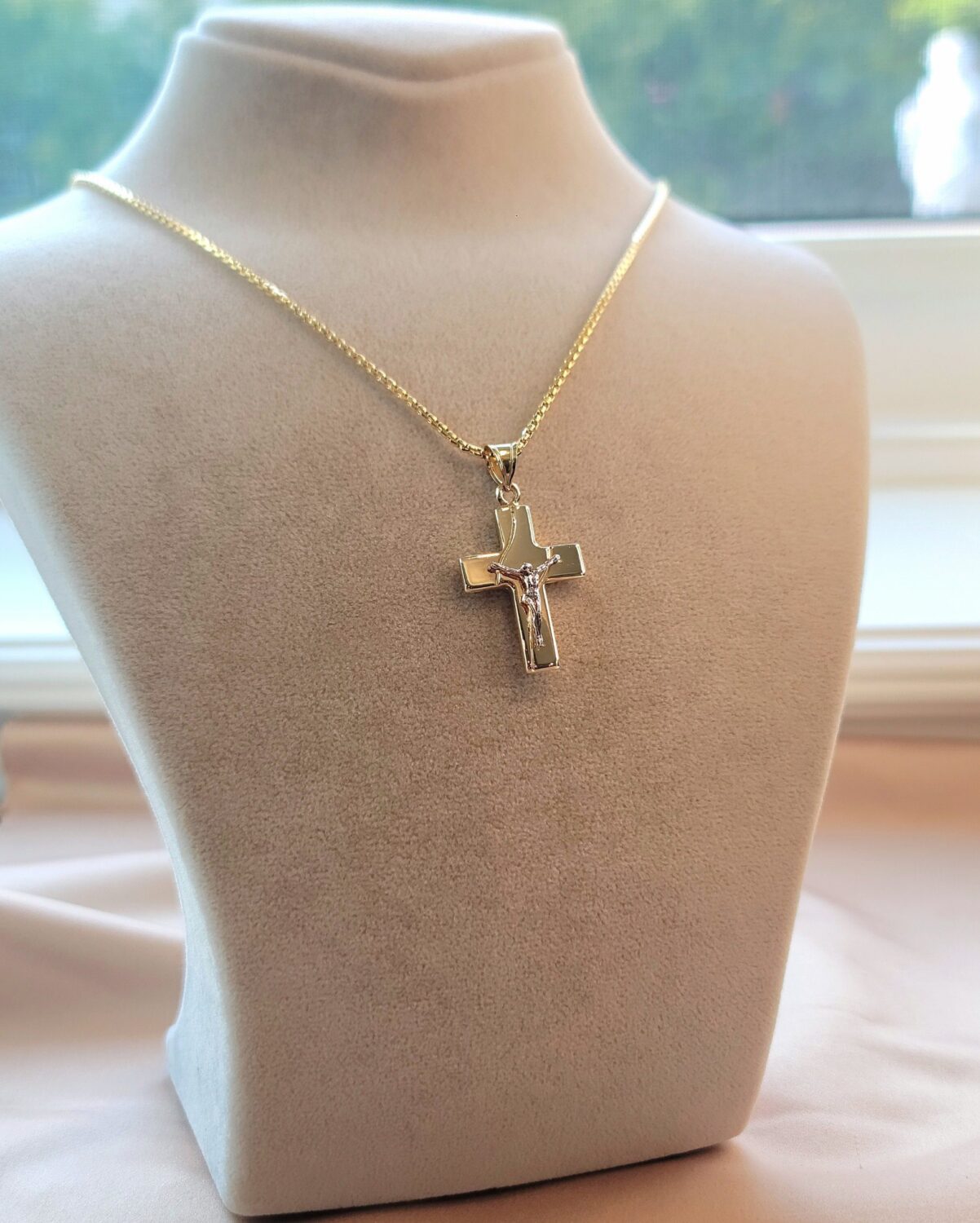 Real Gold Cross Necklace, 14K Solid/Real Yellow Gold Jesus Cross Pendant Necklace, For Men and Women, 14K Gold Box Chain, Birthday Gift!