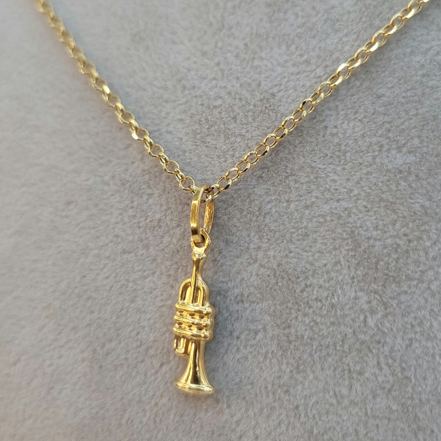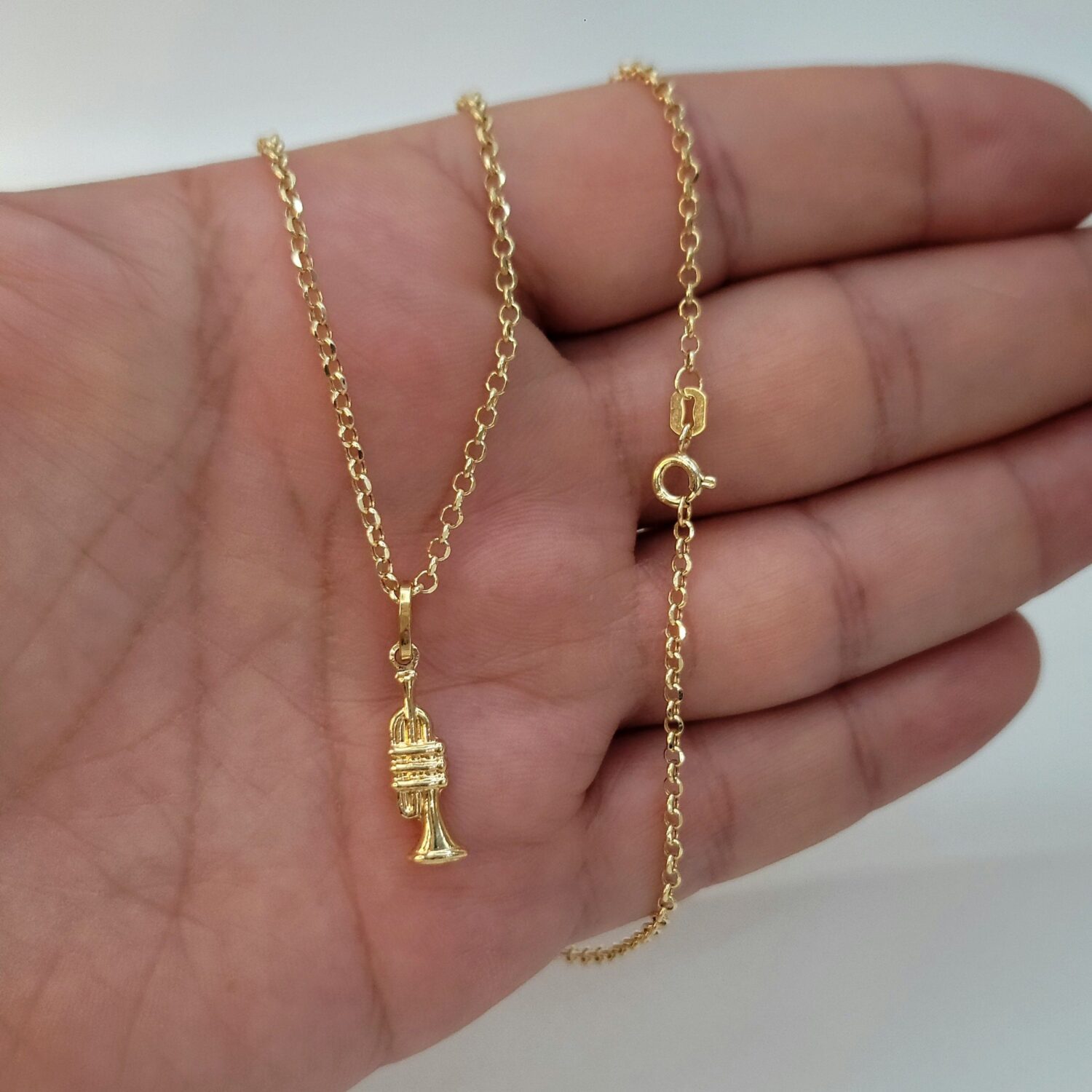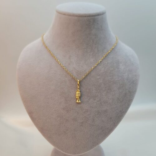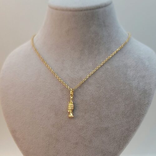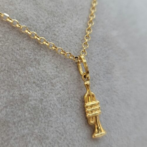 Solid 18K Instrument Necklace, 18K Yellow Gold Trumpet Music Charm Pendant Necklace, Unisex Sax Jazz Instrument Necklace, 18Krt Rolo Chain.