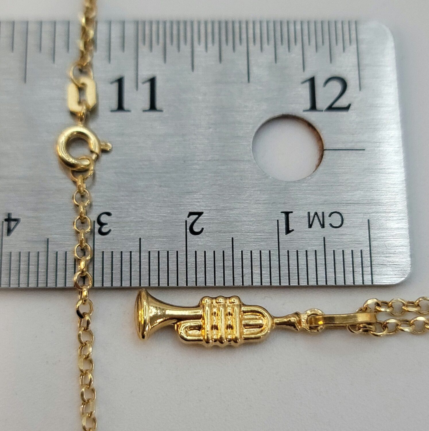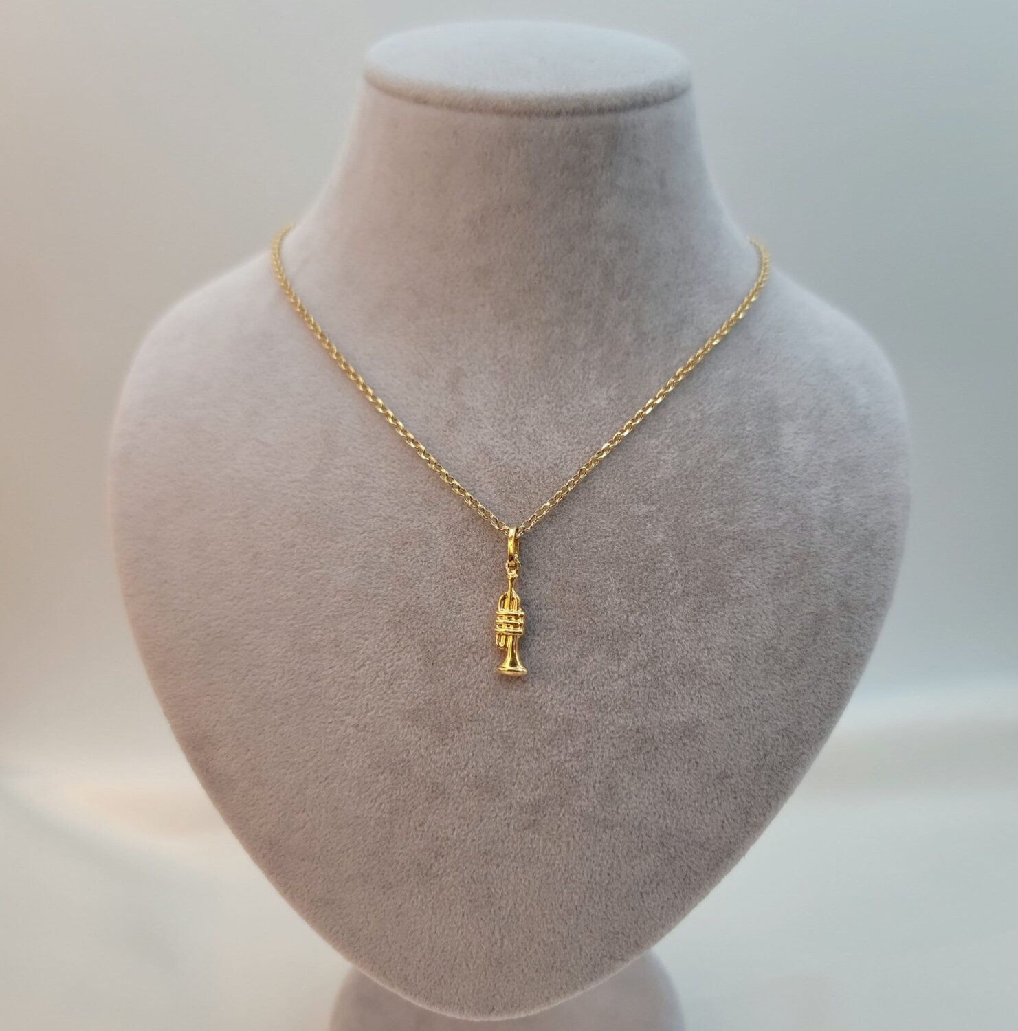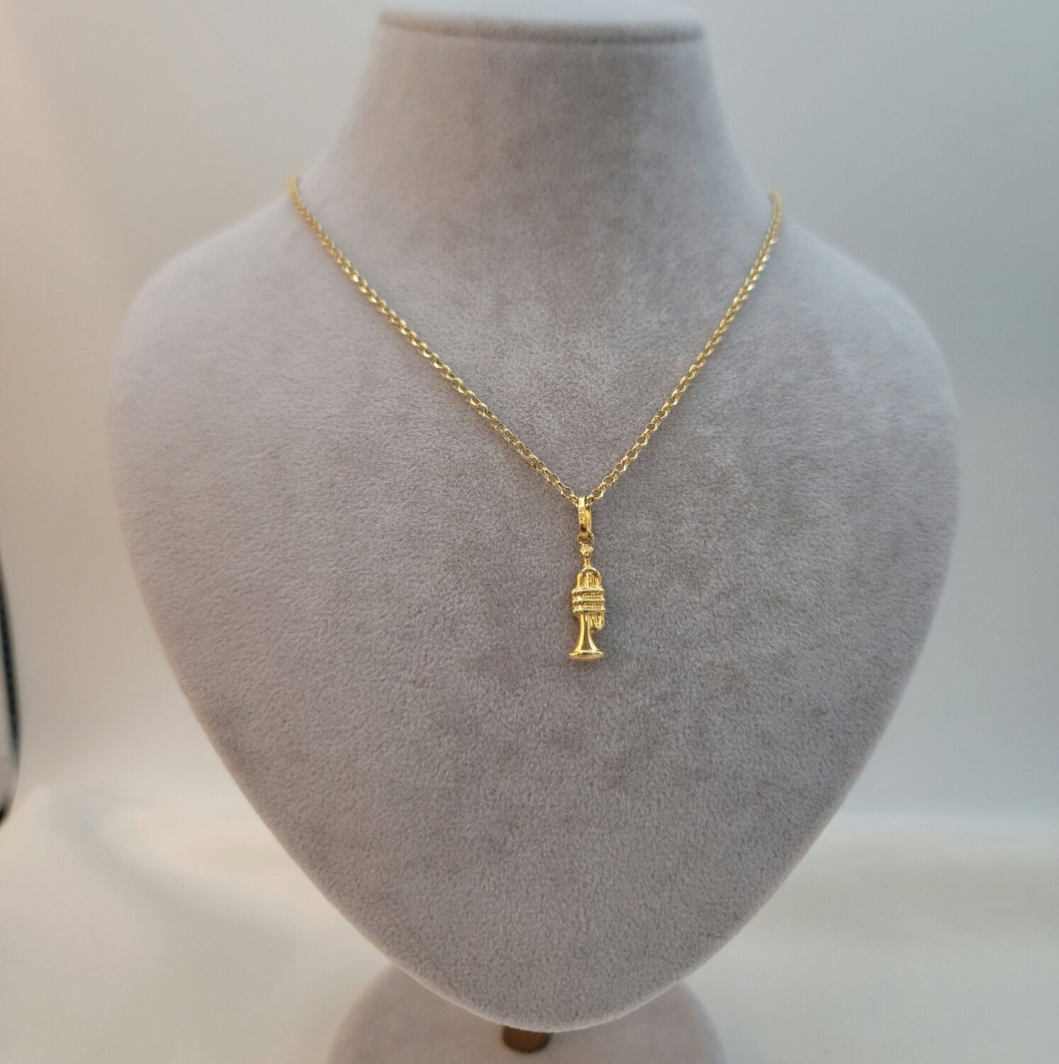 Solid 18K Instrument Necklace, 18K Yellow Gold Trumpet Music Charm Pendant Necklace, Unisex Sax Jazz Instrument Necklace, 18Krt Rolo Chain.