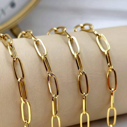 18K Solid Gold Paperclip Bracelet Chain, Real 18K Yellow Gold Paperclip Link Bracelet, 5.65MM, Gold Bracelet For Men & Women, Birthday Gift!